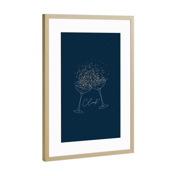 Poster mit Rahmen Gold "Glas Champagner blau" artboxONE - Essen & Trinken,Für Mama,Für Papa,Essen & Trinken / Alkohol