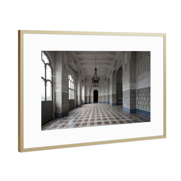 Poster mit Rahmen Gold "Black Chandelier" artboxONE - Architektur - Verlassen,Lost places,Lost,Castle,Schloss,Muster