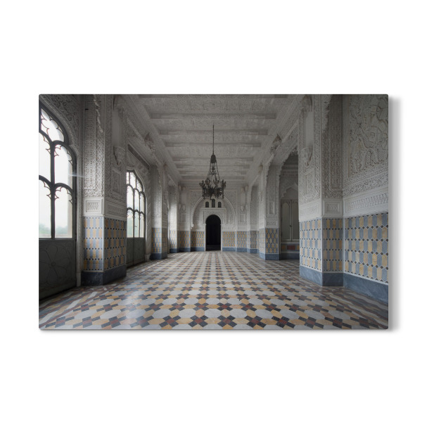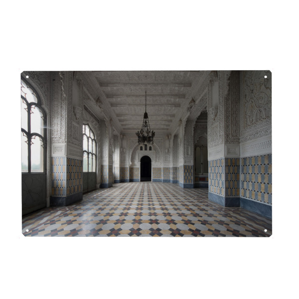 Metall Poster "Black Chandelier" artboxONE - Architektur - Verlassen,Lost places,Lost,Castle,Schloss,Muster - Blechschild