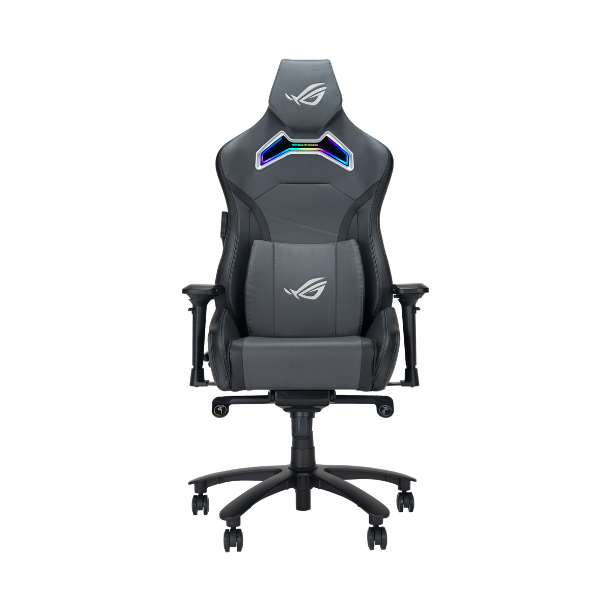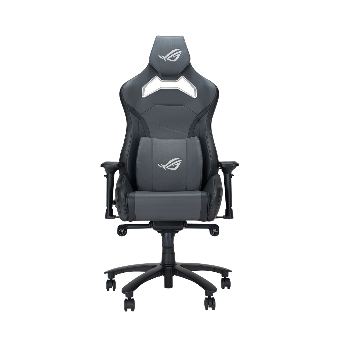 ASUS ROG Chariot X SL301W Gaming Stuhl mit Aura RGB Beleuchtung, 4D-Armlehnen, Memory-Foam, Premium-PU-Leder, One-Touch-Controller, grau