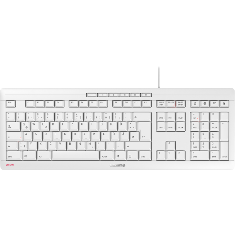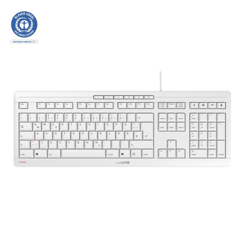CHERRY STREAM KEYBOARD Tastatur weiß, kabelgebunden, Flüsteranschlag, Laserbeschriftung