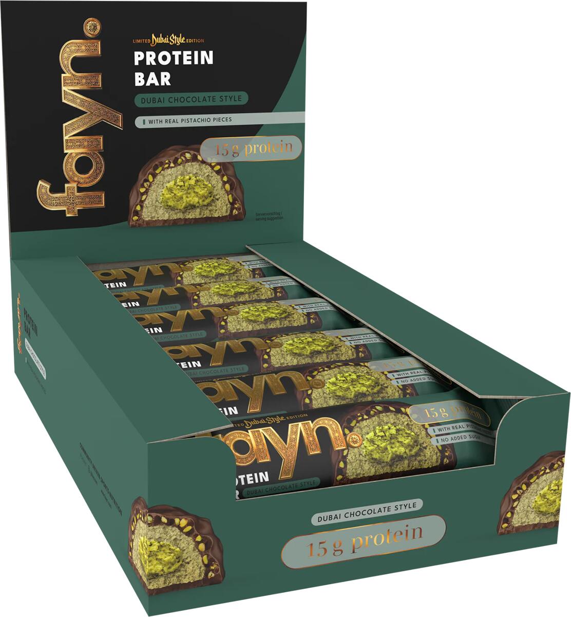 fayn Protein Bar Box, 12 x 55 g Riegel, Dubai Chocolate Style