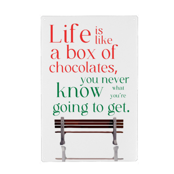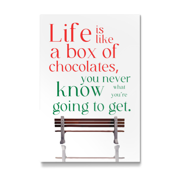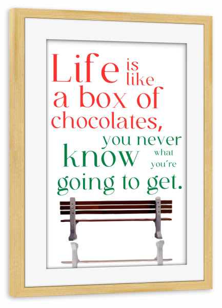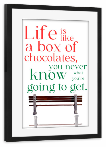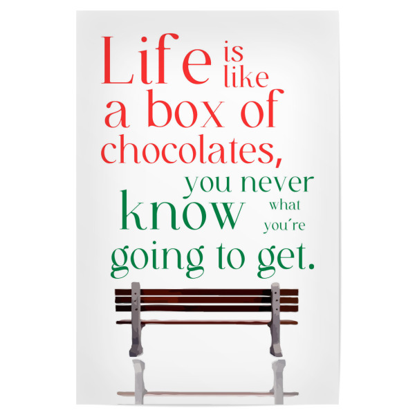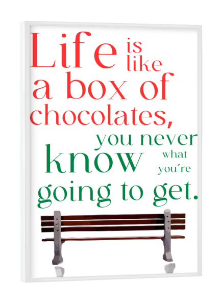 Poster "Box of chocolates" artboxONE - Typografie - Quote,Metaphor,Unpredictability,Life,Chocolates,Bench,Red,Green,Text,White background