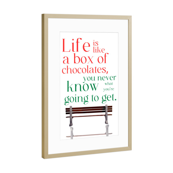 Poster mit Rahmen Gold "Box of chocolates" artboxONE - Typografie