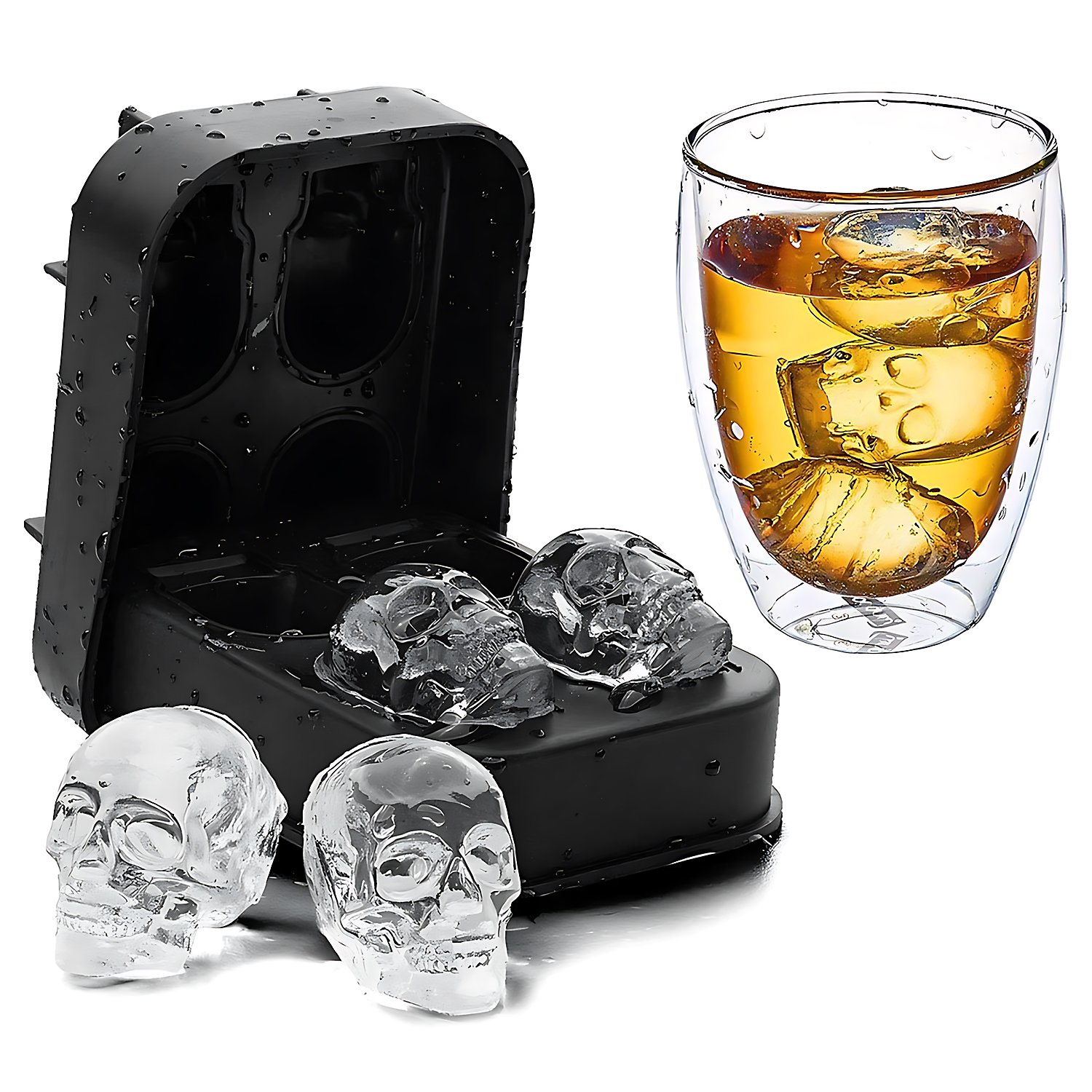 Skulls silicone mould for ice cubes, chocolate and baking 6-grid