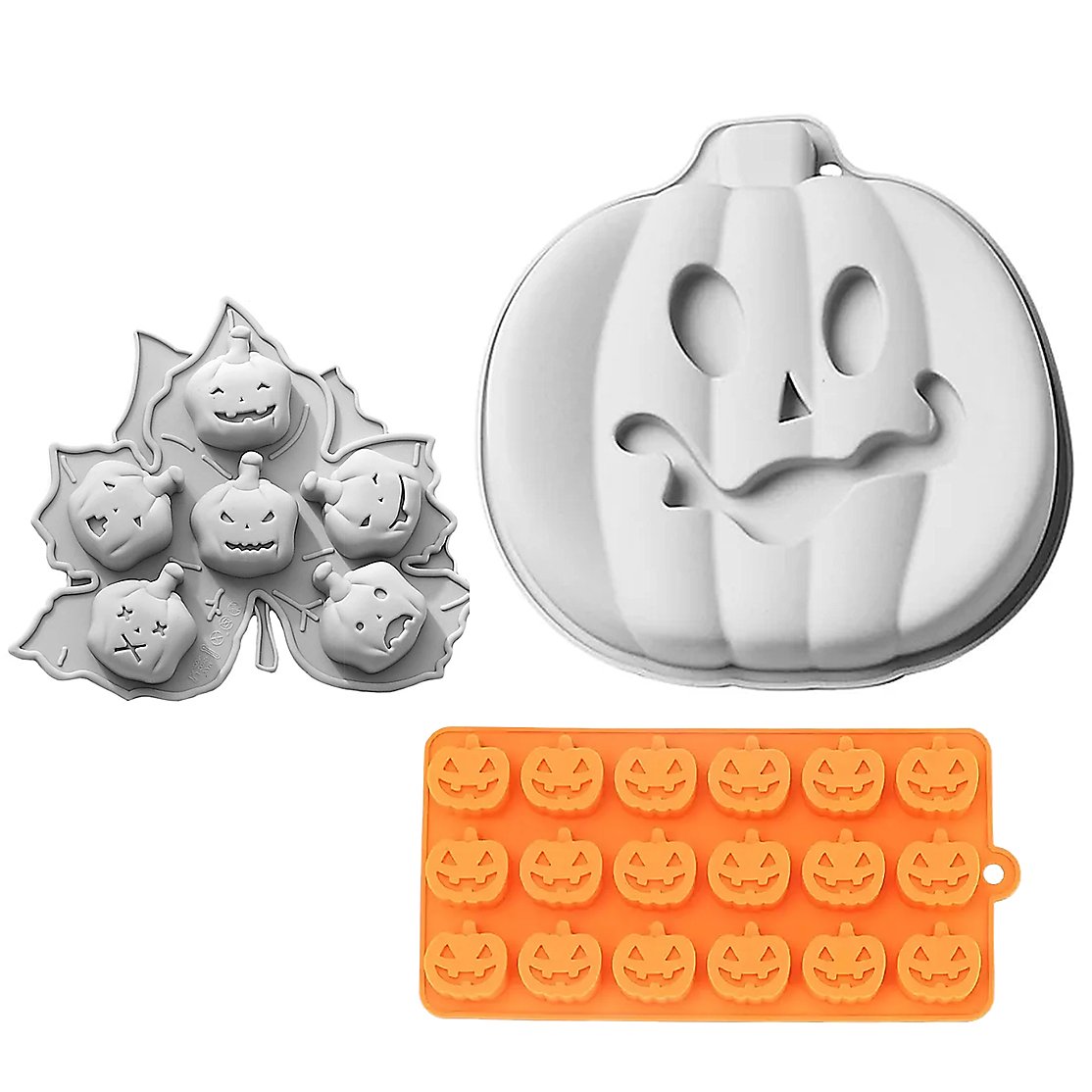 Halloween silicone moulds set pumpkins for baking, for chocolates, gummy bears and ice cubes, set of 3