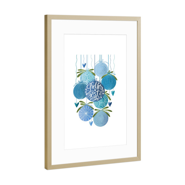 Poster mit Rahmen Gold "Christbaumkugeln blau" artboxONE - Weihnachten - Weihnachten,Christbaumkugel,Weihnachtskugeln,Adventskalender,Advent,Geschenk
