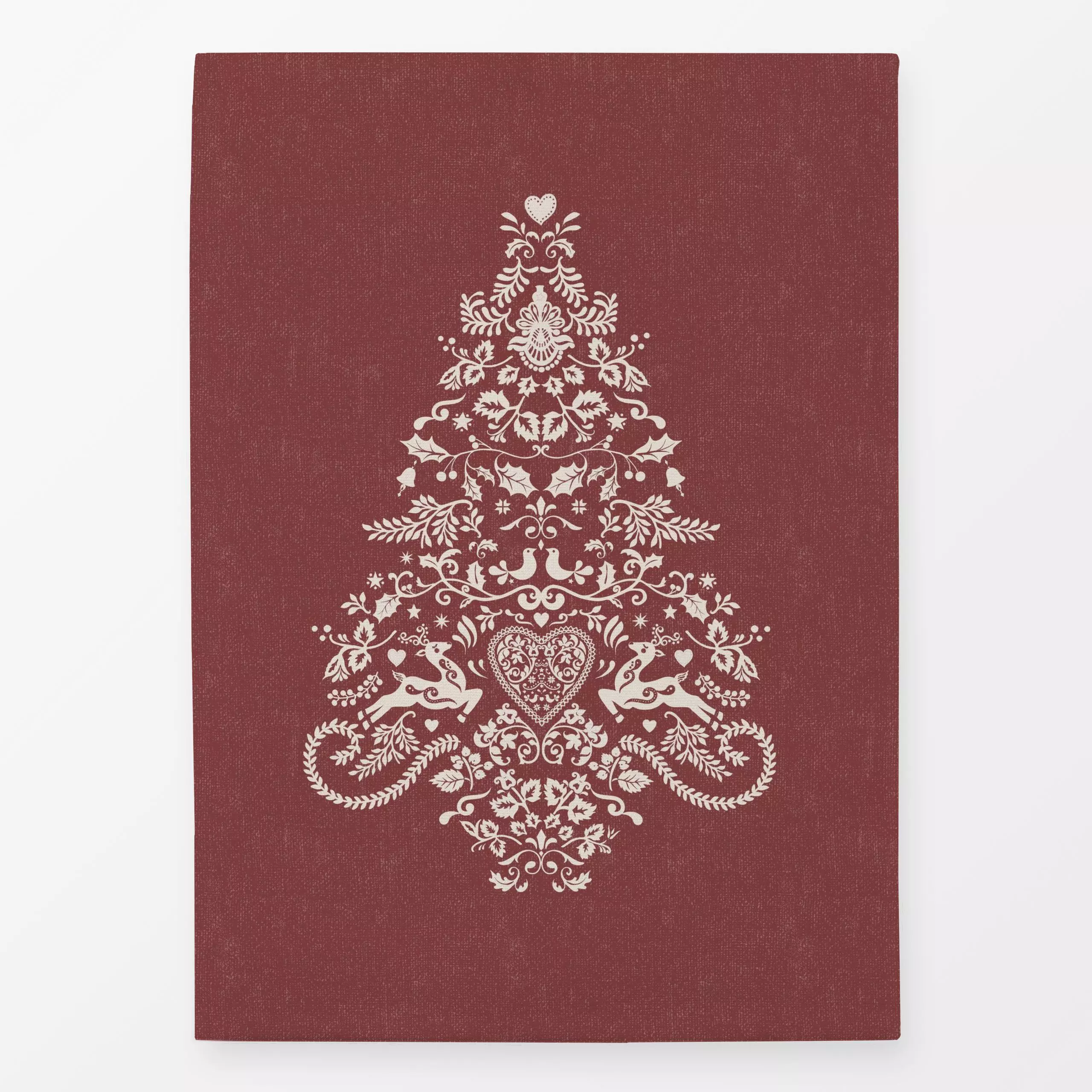 Geschirrtücher Folk Christmas Tree - Rot - Tiere, Weihnachten, Winter - von „Bloomery Decor"; Rentier, Tannenbaum, Weihnacht...