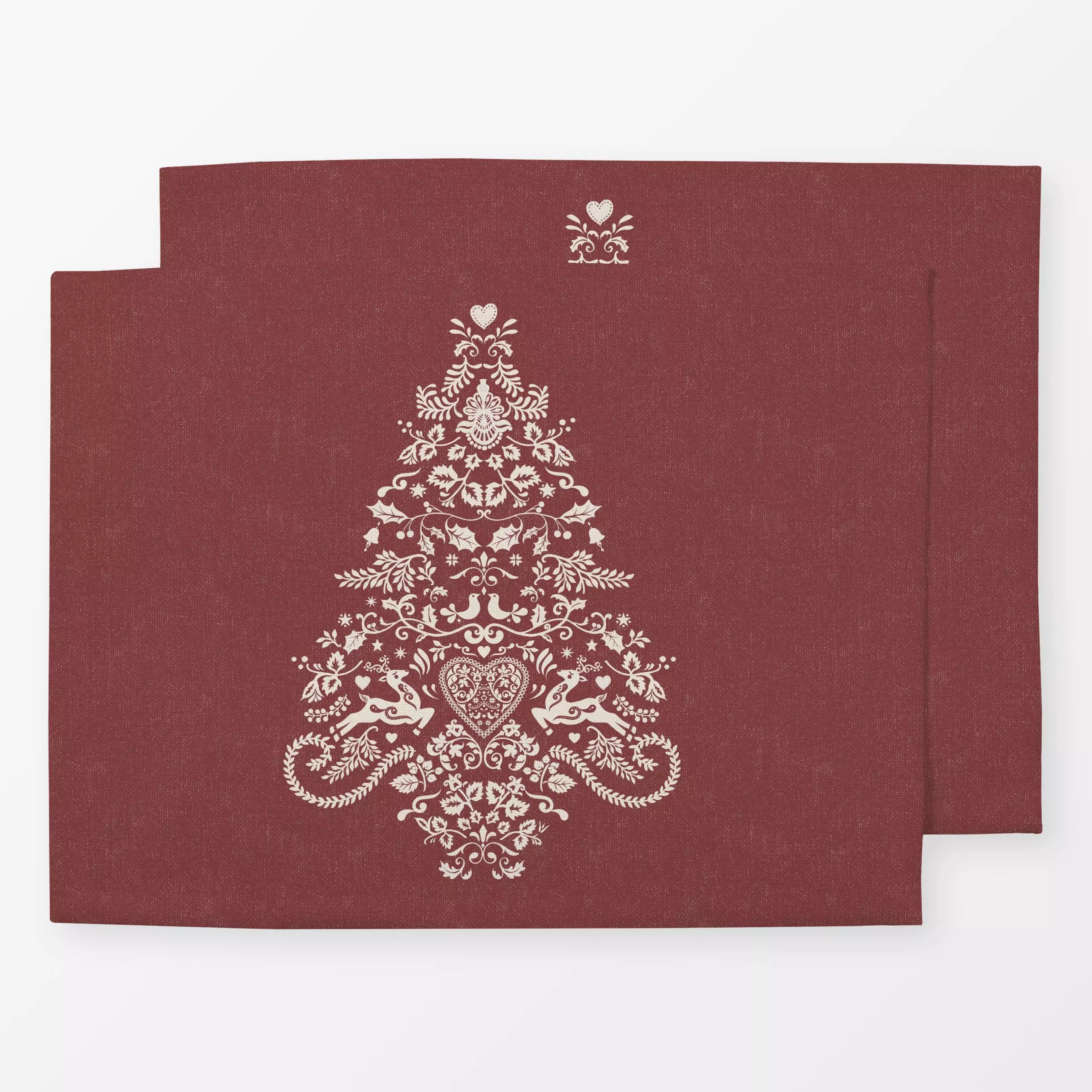 Tischset Folk Christmas Tree - Rot - Tiere, Weihnachten, Winter - von „Bloomery Decor"; Rentier, Tannenbaum, Weihnachtsbaum,...