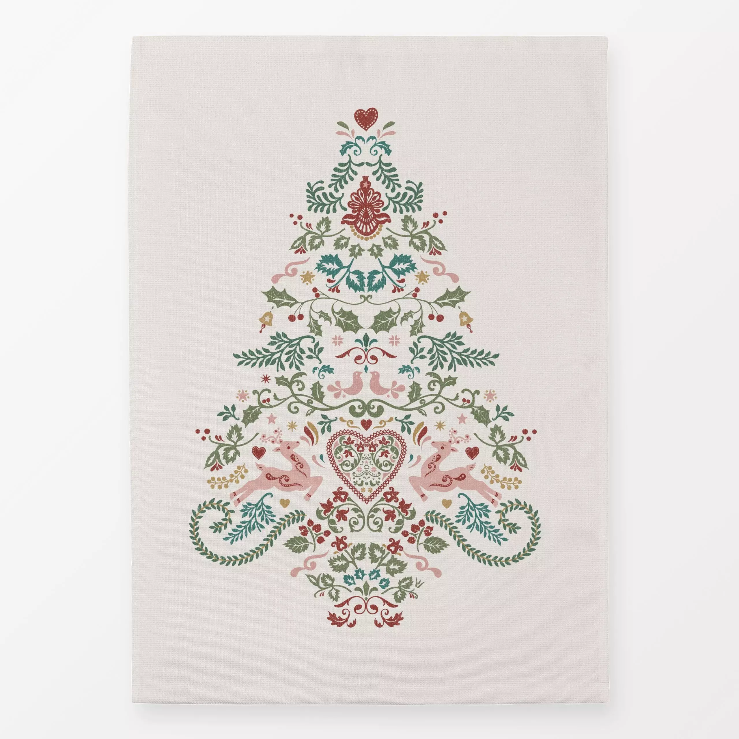Geschirrtücher Folk Christmas Tree beige - Kinderzimmer & Motive für Kinder, Weihnachten, Winter - von „Bloomery Decor"; Ren...