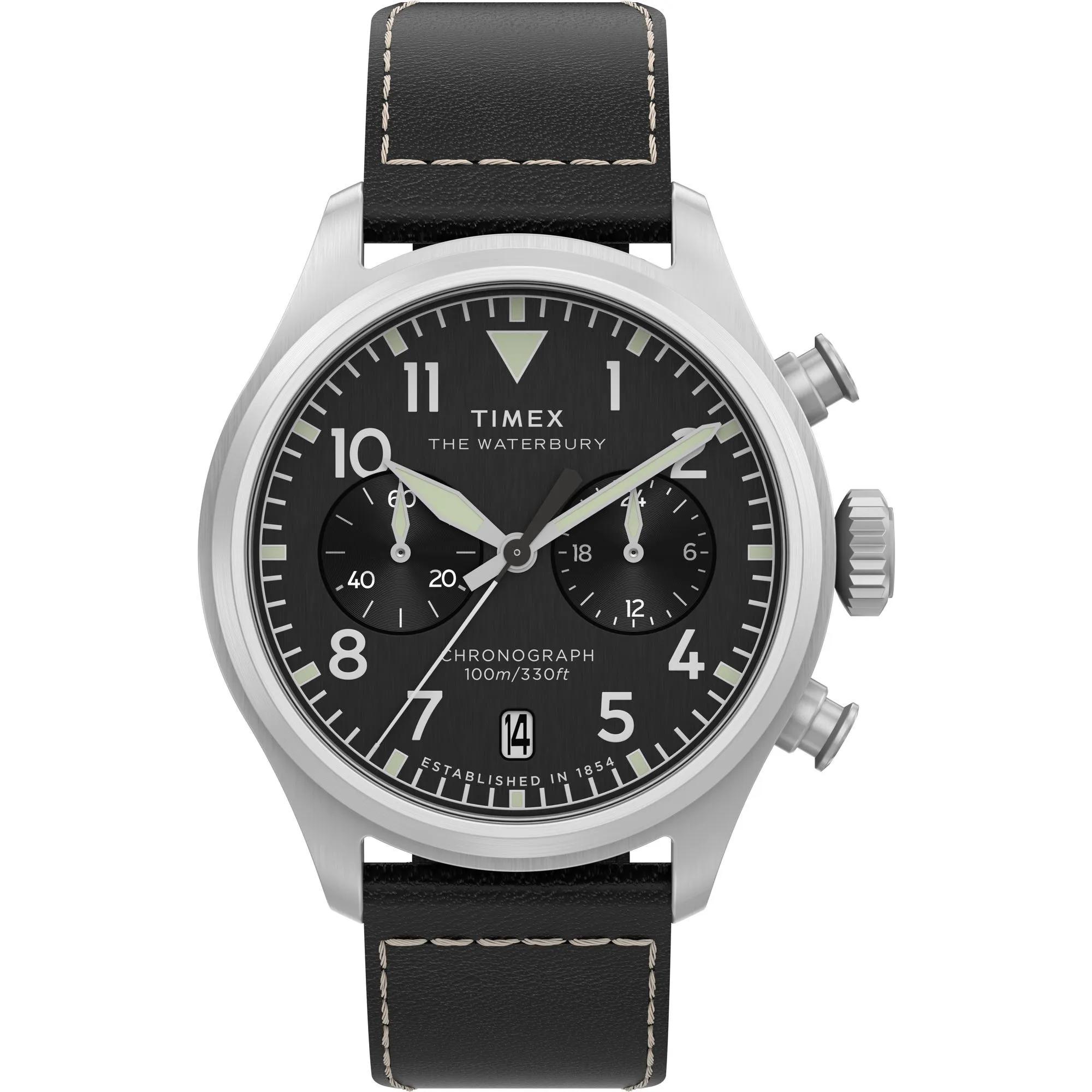 Timex Uhren - Quarz-Analoguhr Waterbury Traditional Chronograph - Gr. unisize - in Schwarz - für Herren - aus Leder & Edelstahl