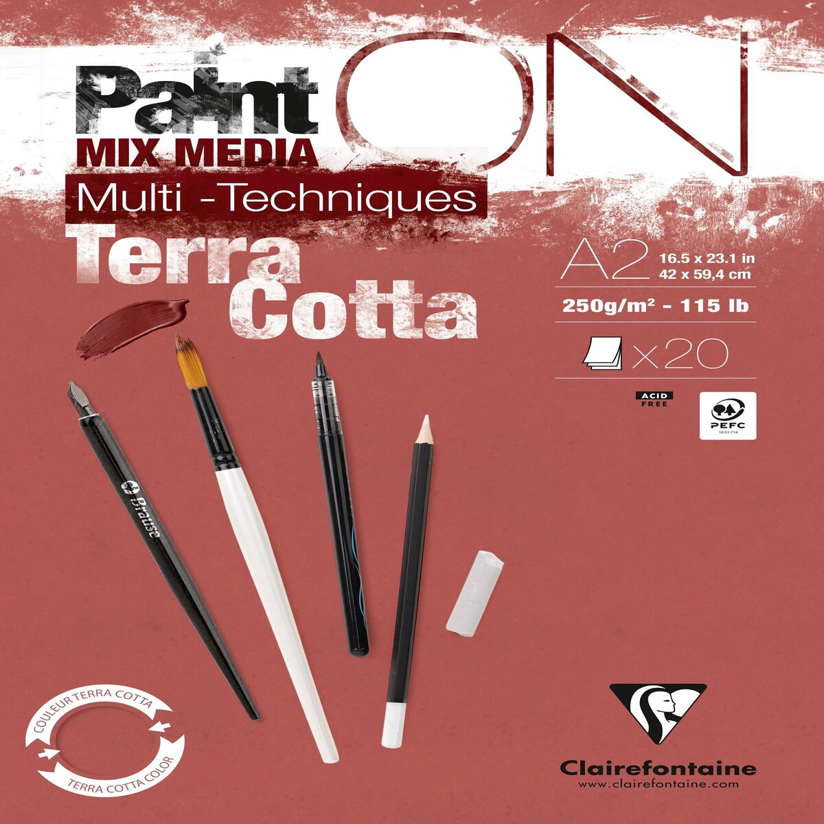 Clairefontaine PaintON Terracotta, Block A2, kopfseitig geleimt, 20 Blatt 250g, Mixed Media - 976155C