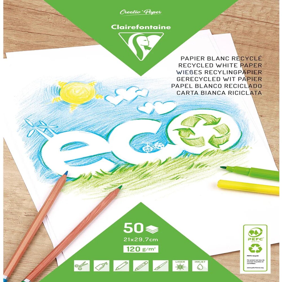 Clairefontaine Recycling Zeichenblock ECO, farbig, 21 cm x 29,7 cm, DIN A4, 80 g/m², Block mit 100 Blatt (1-seitig geleimt)