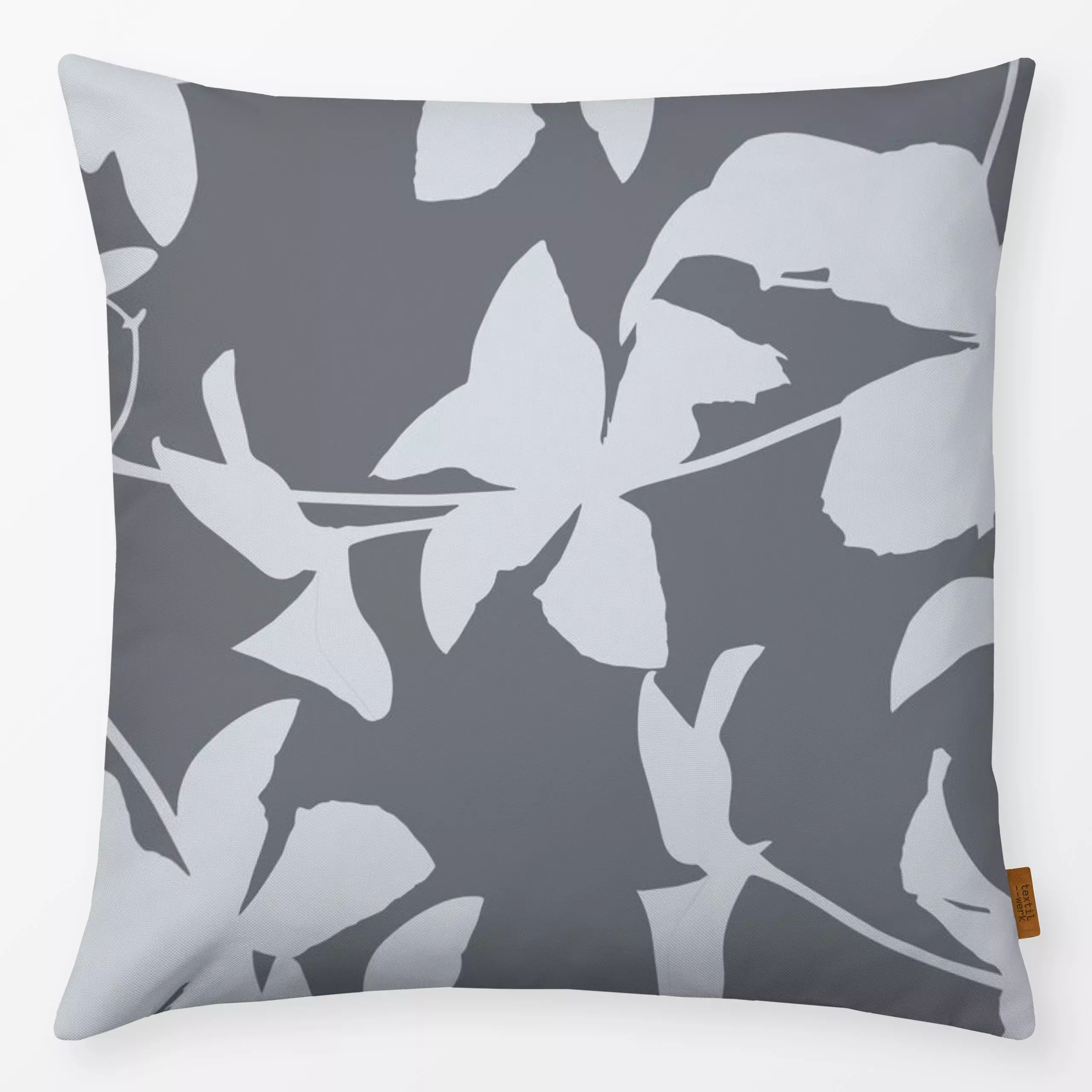 Kissen Clematis Minimalistic 2 - Blumen & Florales, Pflanzen & Botanik - von „Andrea Haase"; Natur, grau, Blumen, Minimalism...