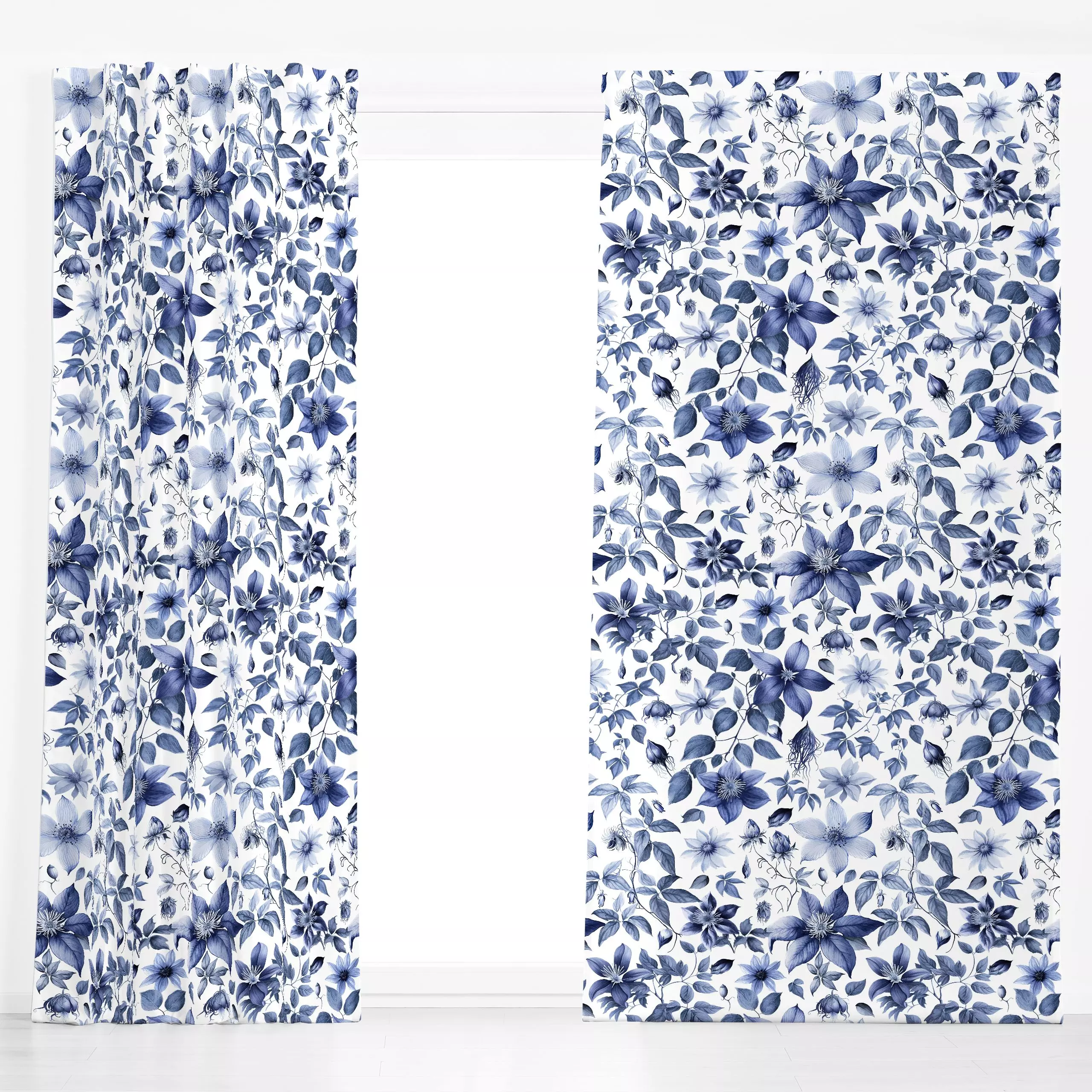 Dekovorhang Charming Clematis blue - Blumen & Florales, Frühling, Pflanzen & Botanik - von „Andrea Haase"; Natur, Blumen, fl...