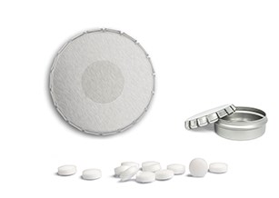 Werbeartikel Brauseherzen in Mini Clic Clac Box – weiß – mit Logo bedruckt