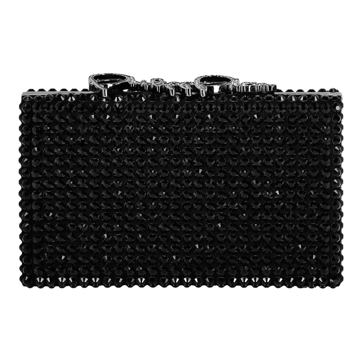 20cm Damen Abend Satin Braut Diamant Damen Clutch Bag Party Prom Umschlag mit abnehmbarer Kette schwarz