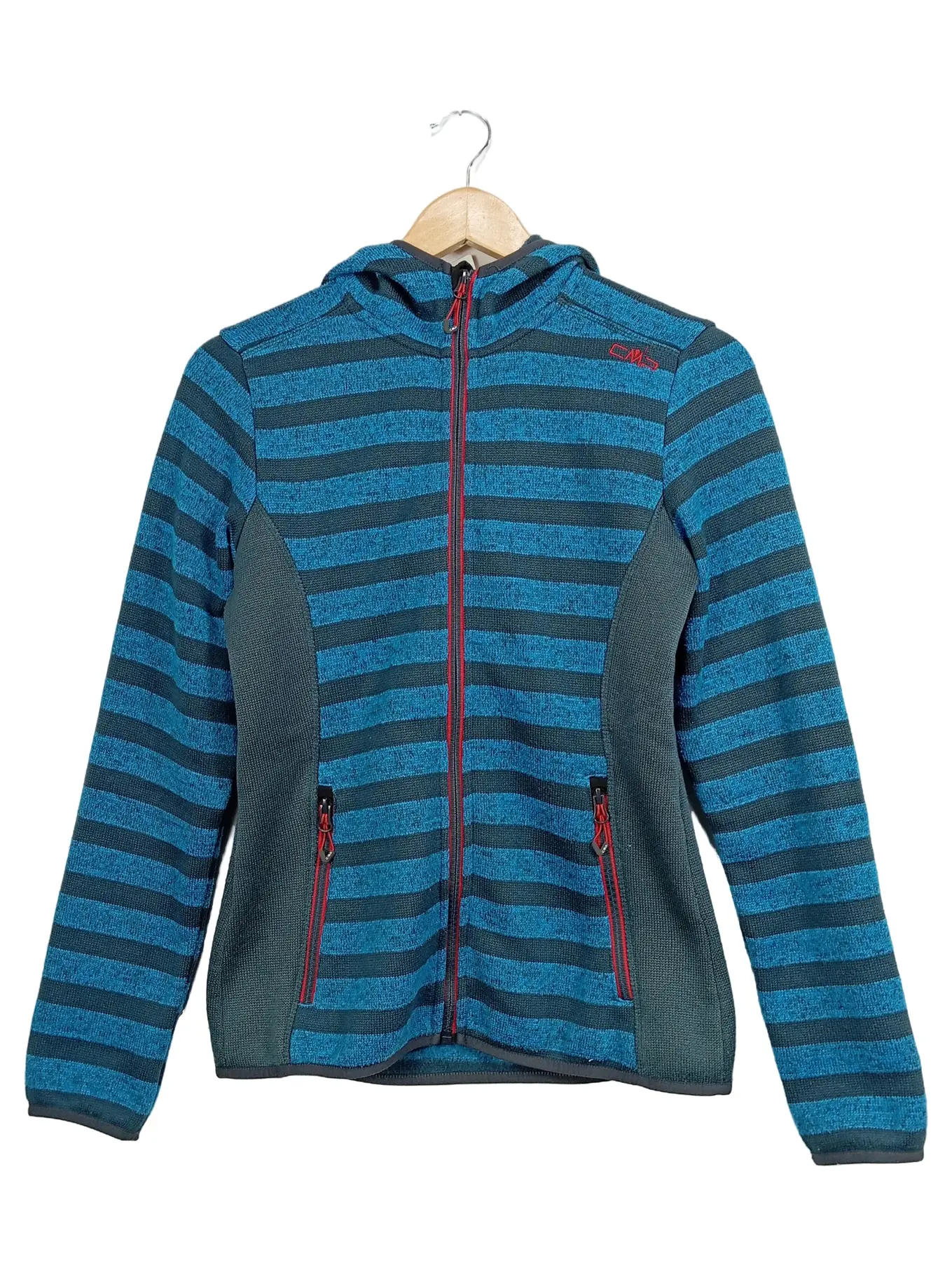 CMP Damen Fleecejacke Strickfleece Kapuze Gr. 38 Petrol Gestreift Outdoor