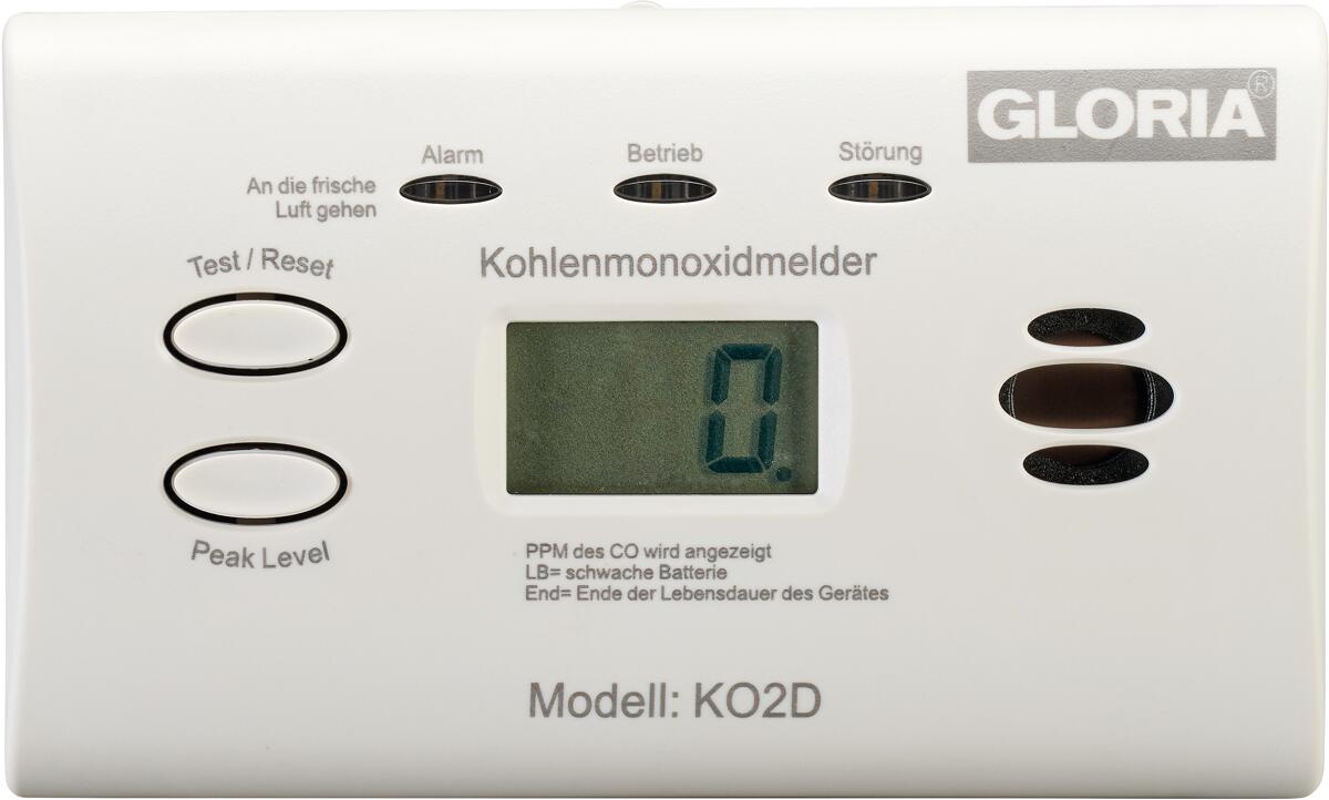 Gloria KO2D CO-Melder mit Display, Spitzenwertspeicher, austauschbare Batterie, weiß (002518.0571)