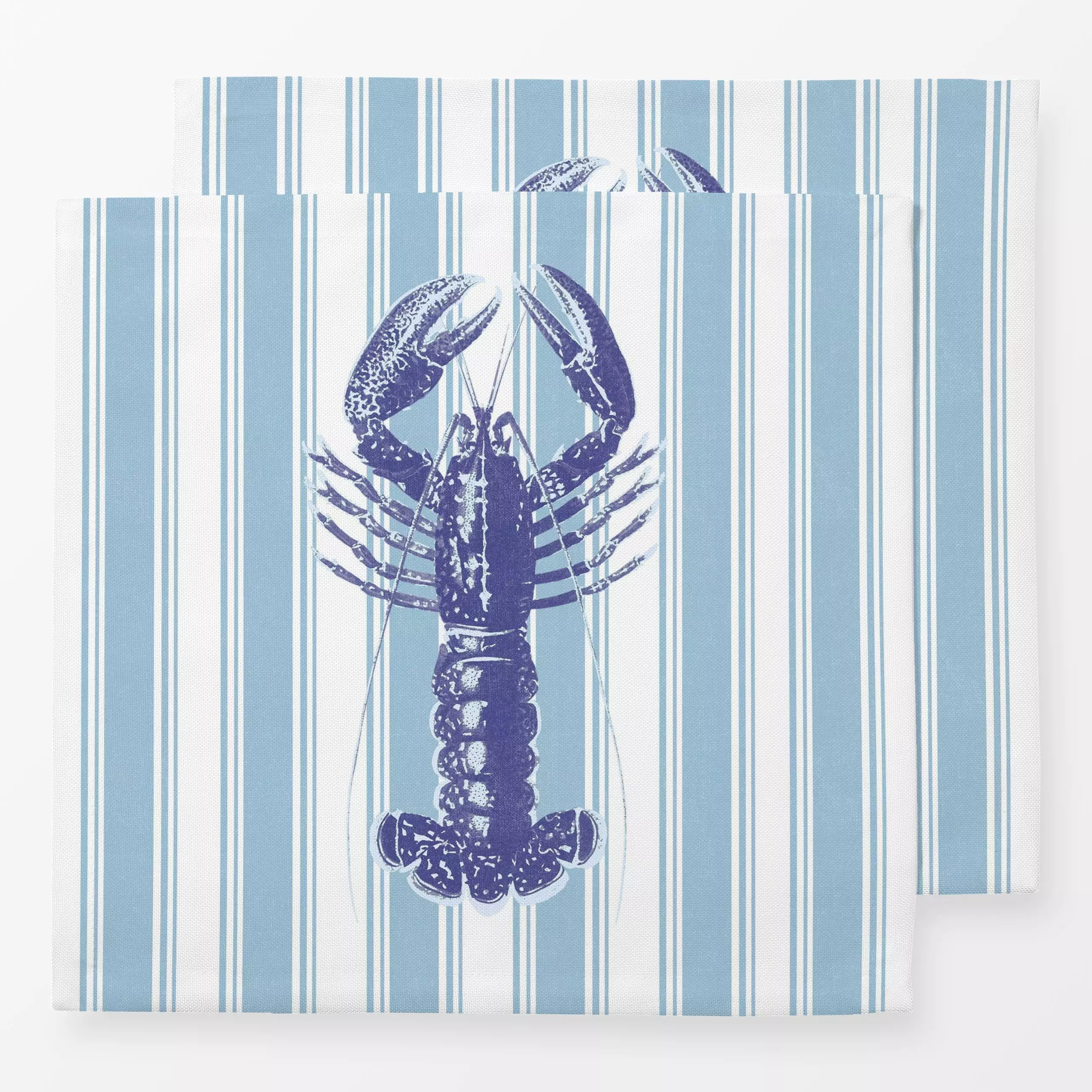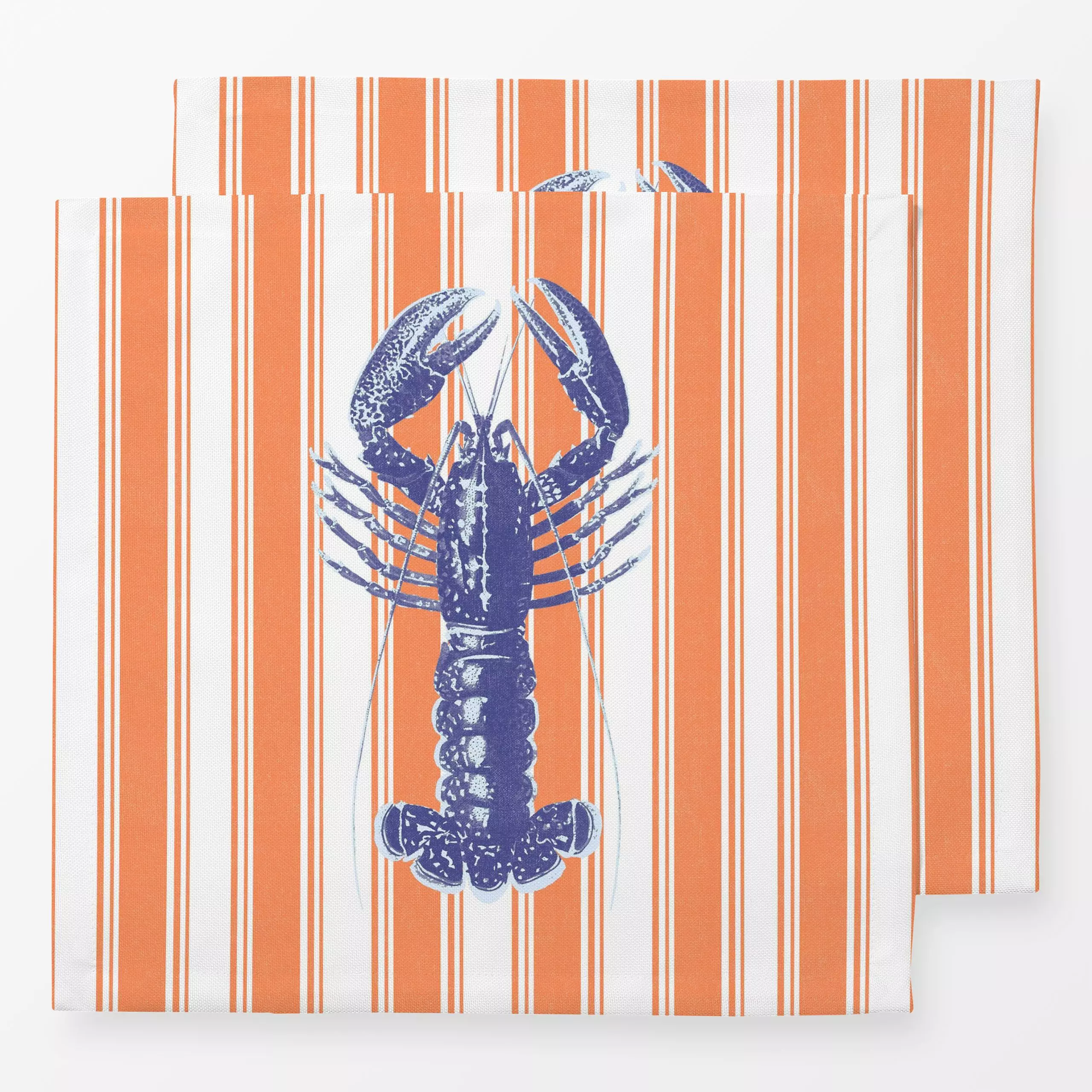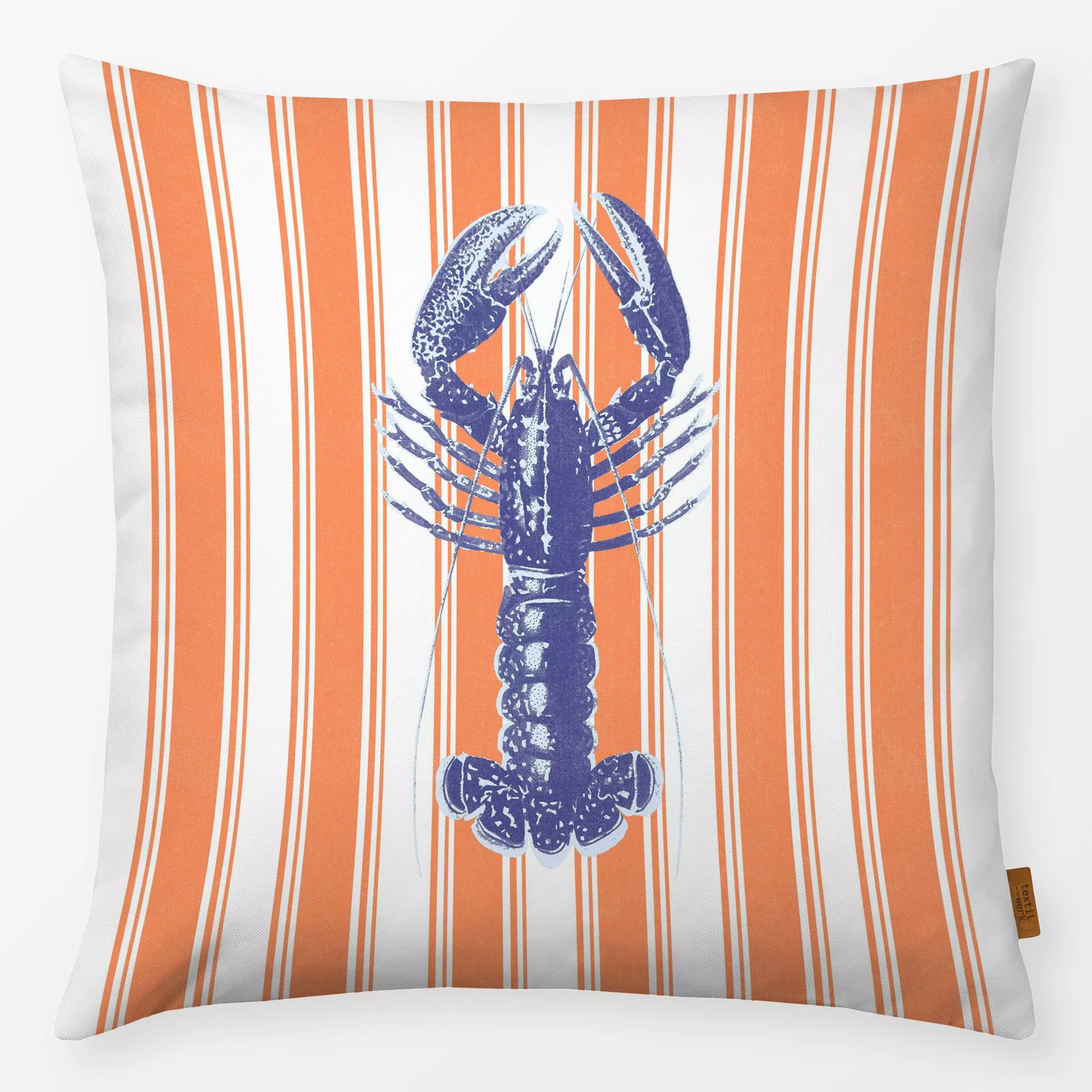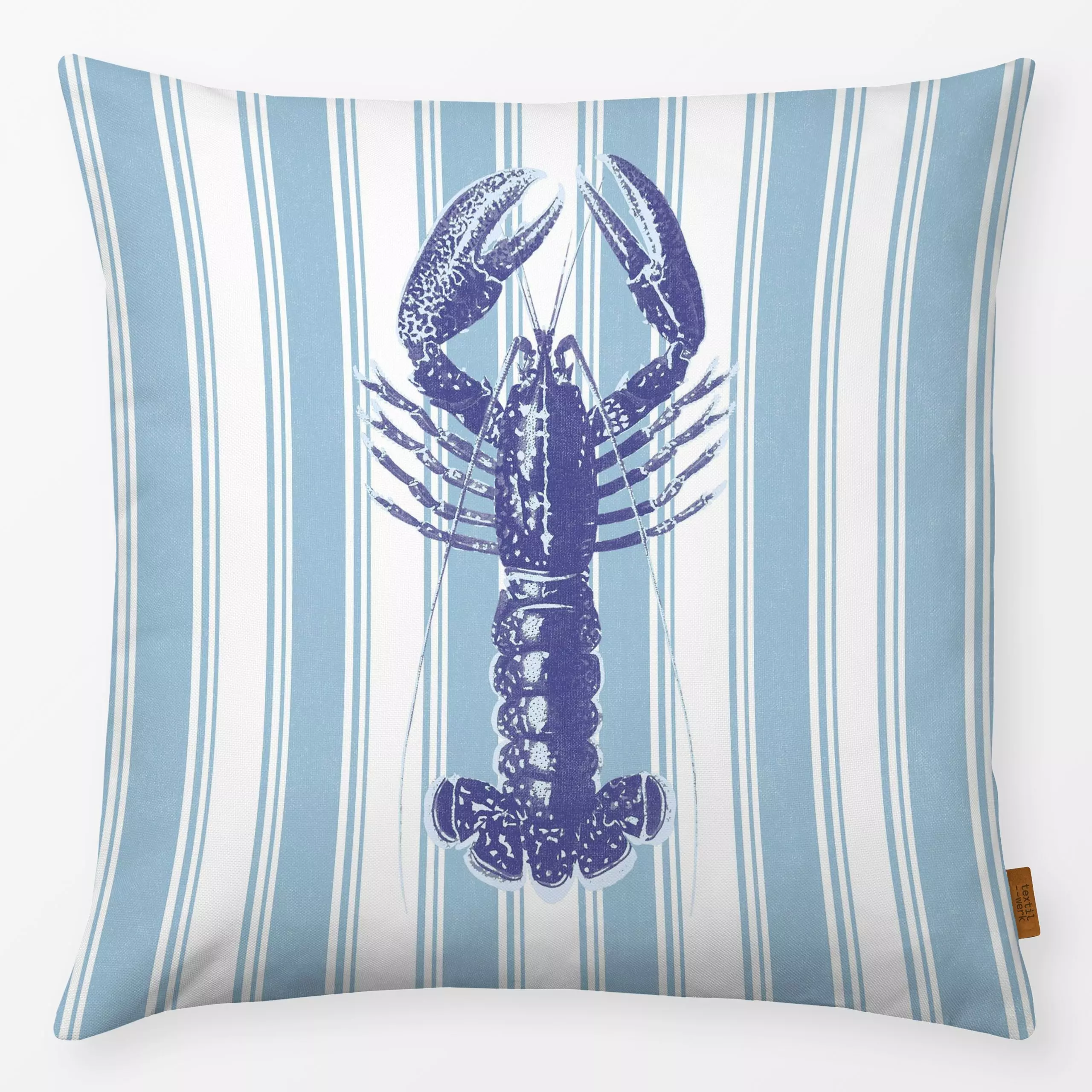 Kissen Coastal Stripes and Lobster I - Sommer, Tiere, Symbole & Muster - von „Bloomery Decor"; Meer, Strand, Meerestiere, vi...