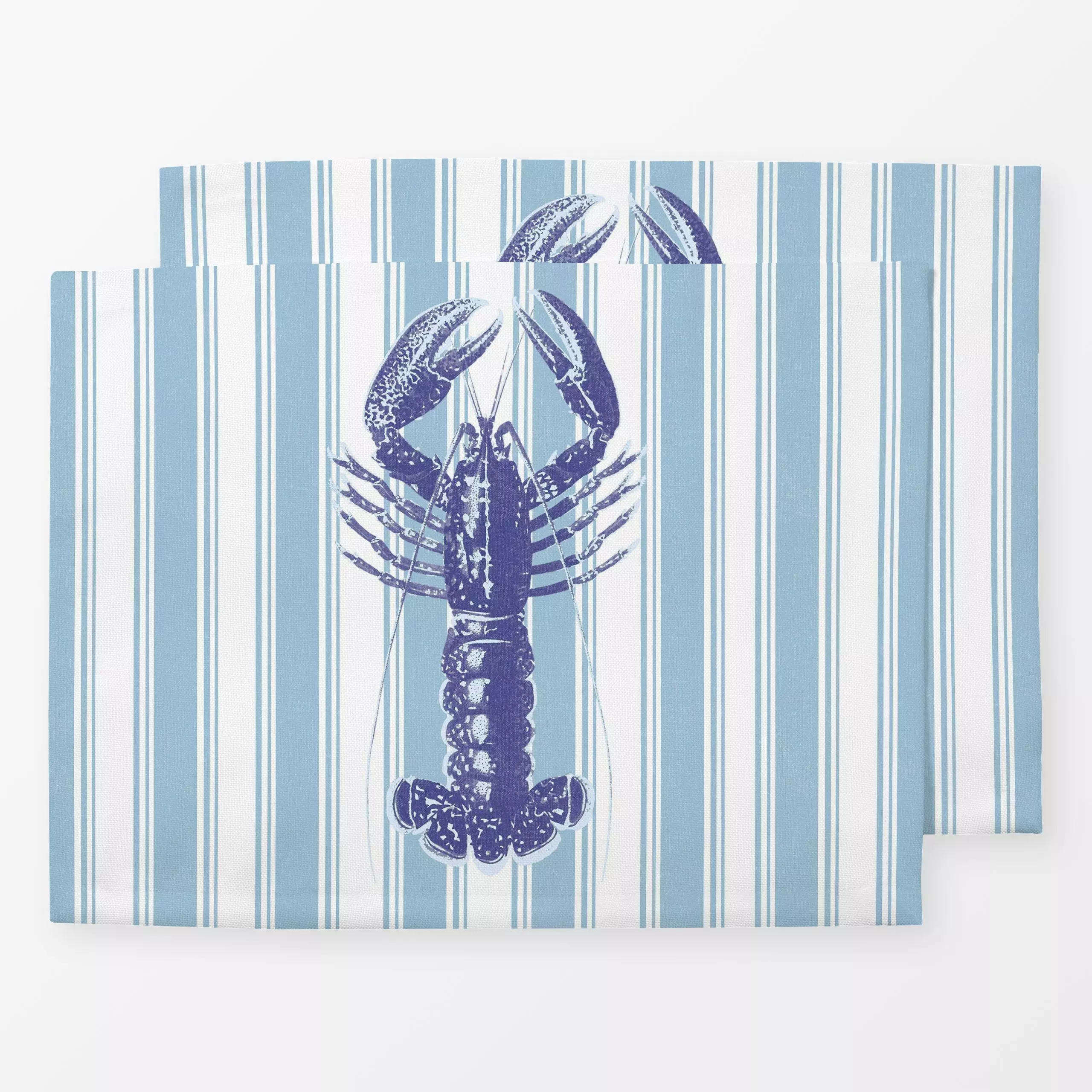 Tischset Coastal Stripes and Lobster I - Sommer, Tiere, Symbole & Muster - von „Bloomery Decor"; Meer, Strand, Meerestiere, ...