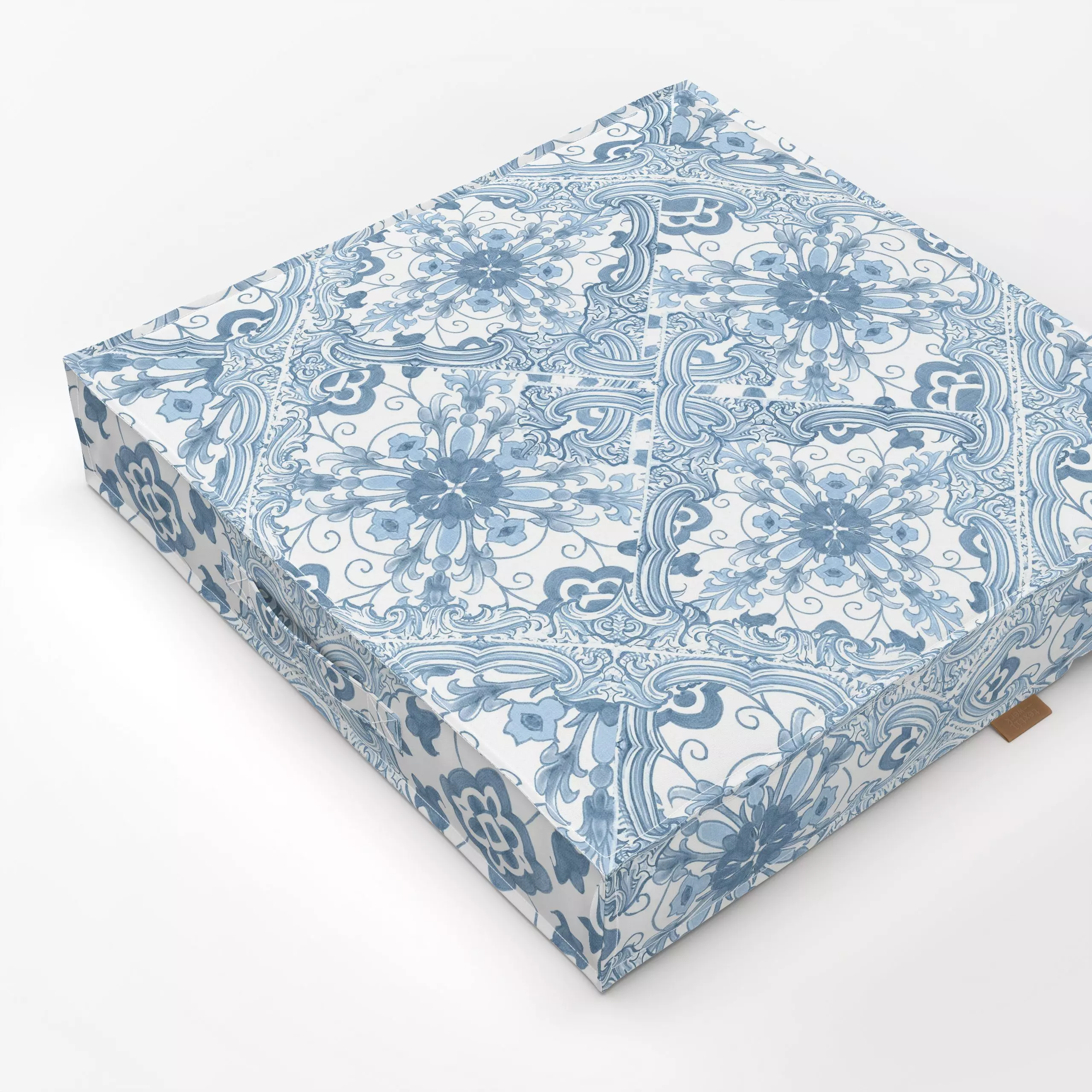 Bodenkissen Baroque Floral Tiles Blau - Symbole & Muster - von „Bloomery Decor"; Blumen, floral, vintage, coastal, fliese, M...