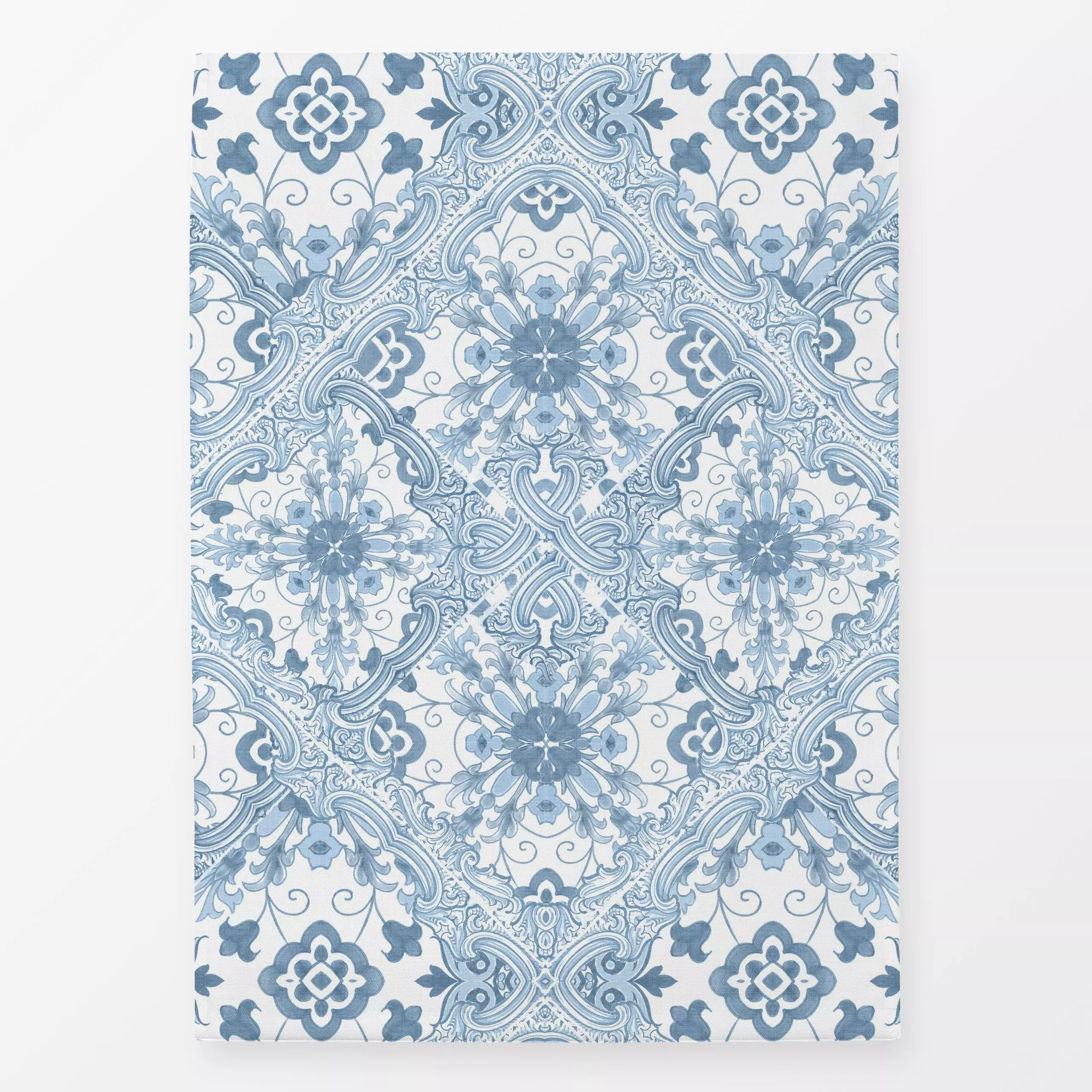 Tischdecke Baroque Floral Tiles Blau - Symbole & Muster - von „Bloomery Decor"; Blumen, floral, vintage, coastal, fliese, Mi...