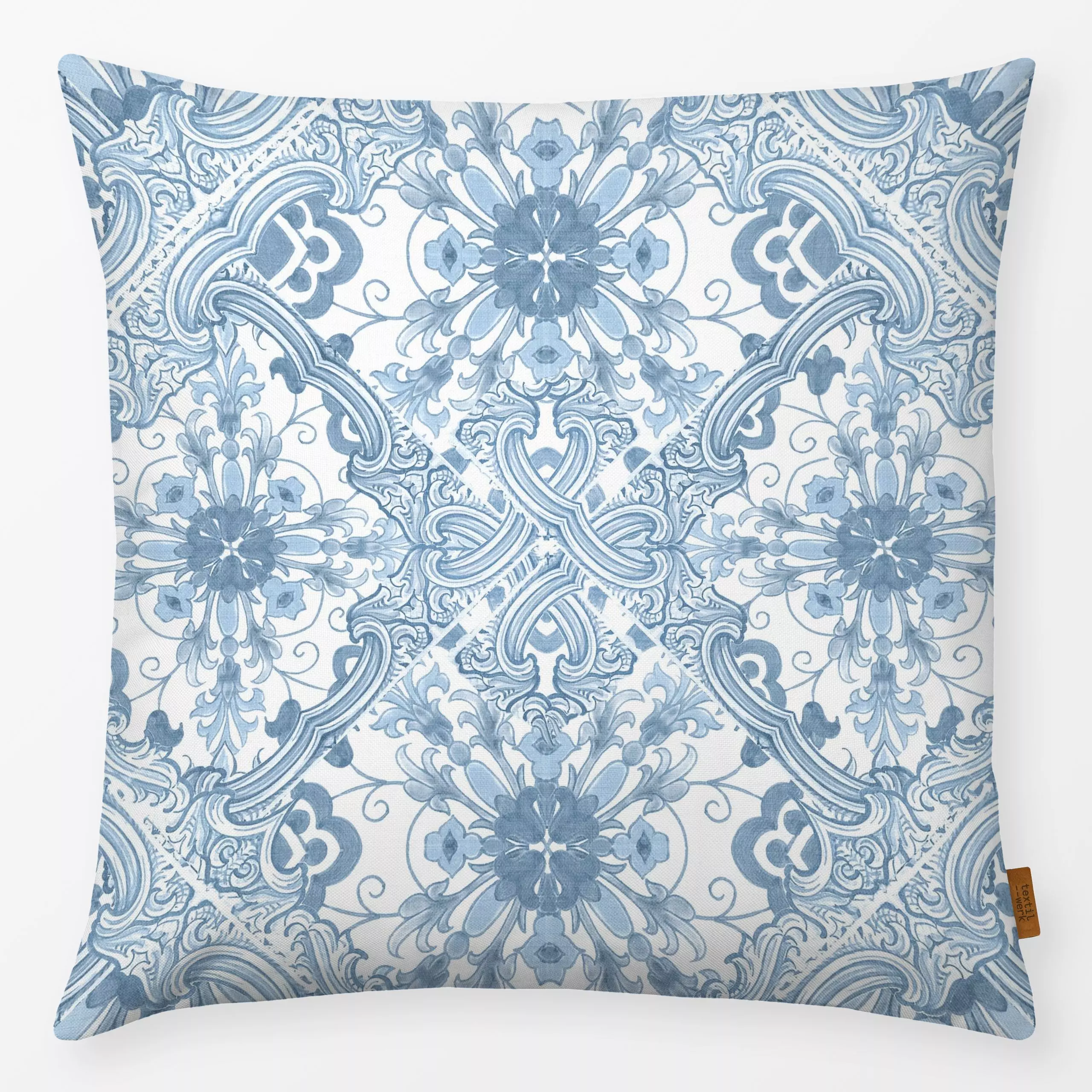 Kissen Baroque Floral Tiles Blau - Symbole & Muster - von „Bloomery Decor"; Blumen, floral, vintage, coastal, fliese, Mittel...
