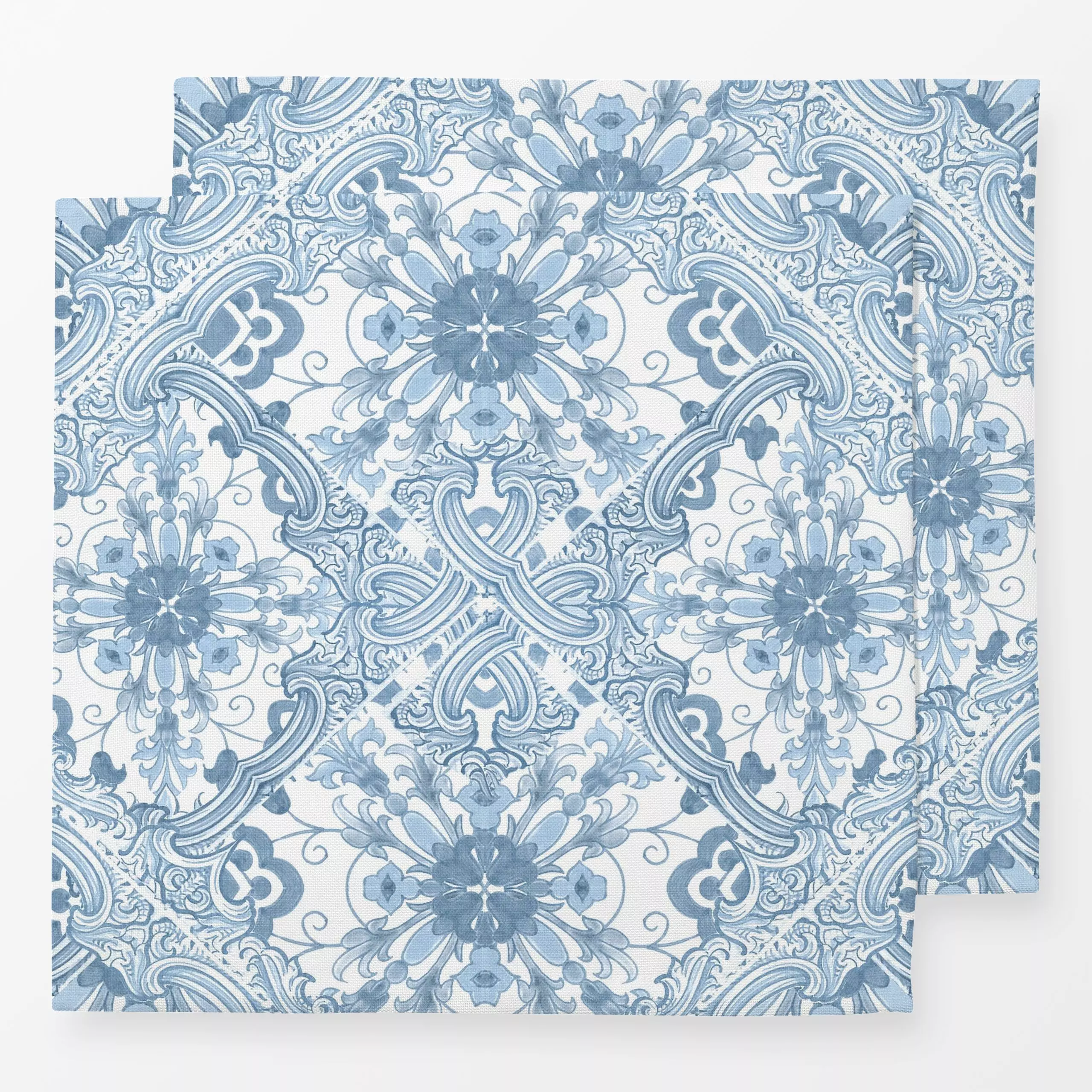 Servietten Baroque Floral Tiles Blau - Symbole & Muster - von „Bloomery Decor"; Blumen, floral, vintage, coastal, fliese, Mi...