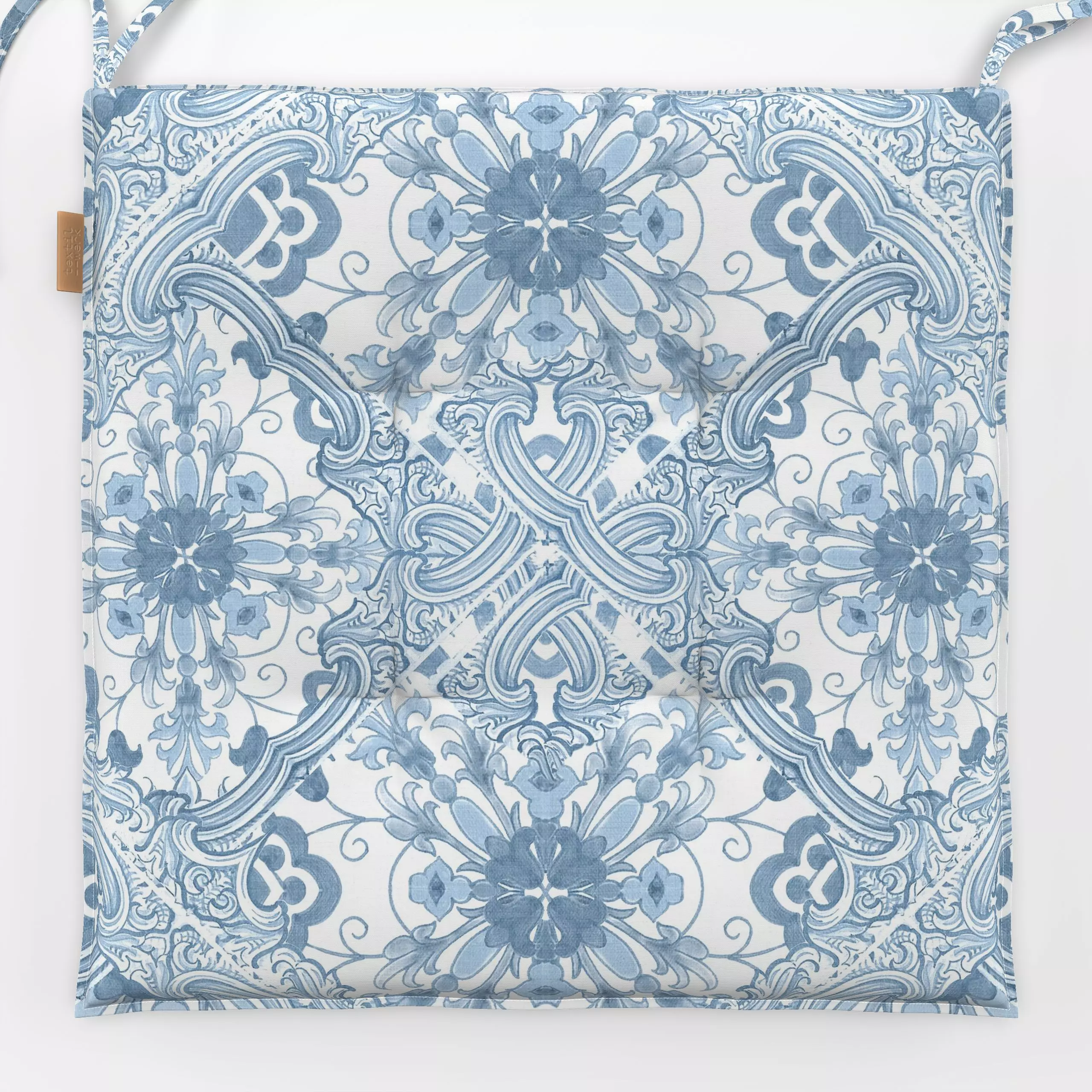 Sitzkissen Baroque Floral Tiles Blau - Symbole & Muster - von „Bloomery Decor"; Blumen, floral, vintage, coastal, fliese, Mi...
