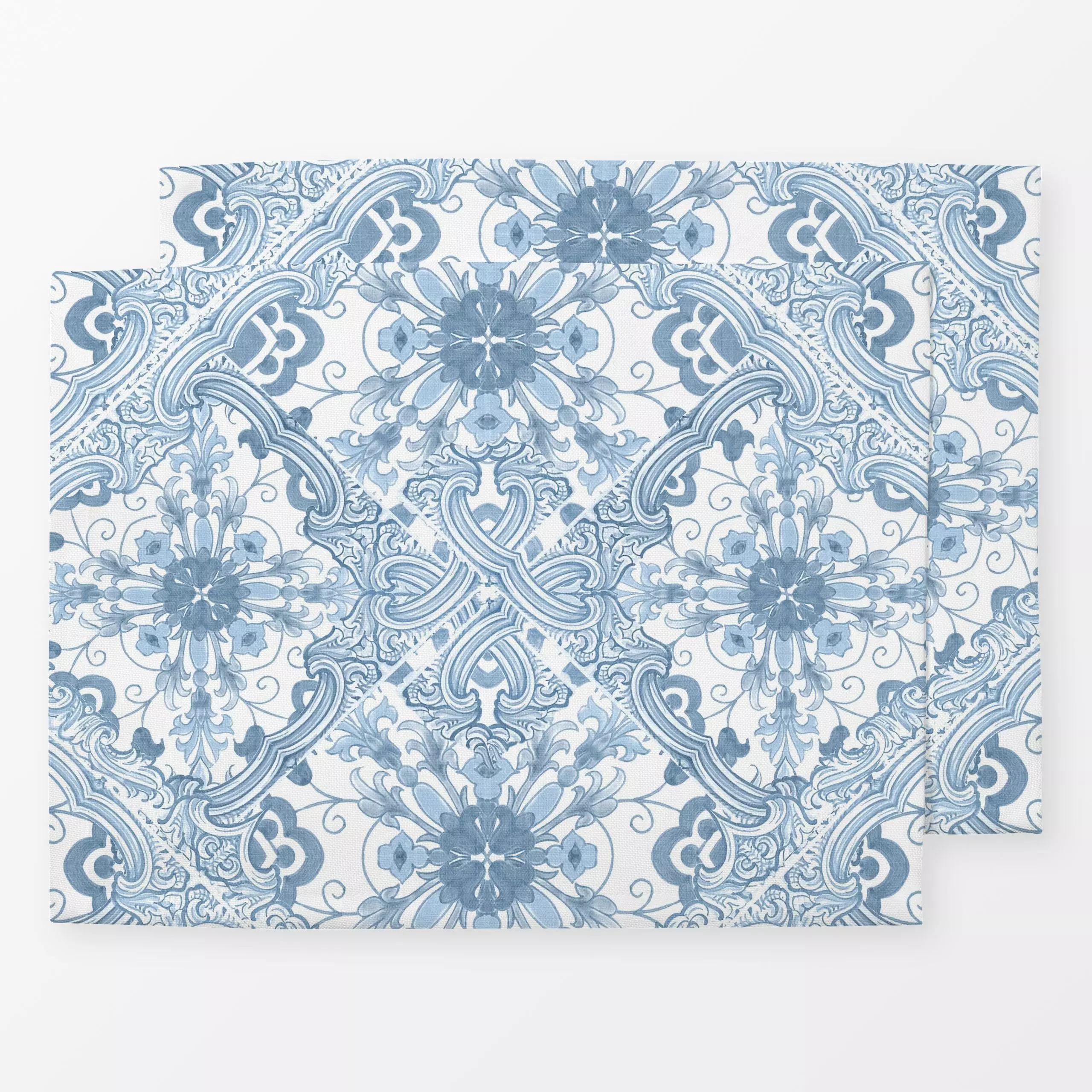 Tischset Baroque Floral Tiles Blau - Symbole & Muster - von „Bloomery Decor"; Blumen, floral, vintage, coastal, fliese, Mitt...
