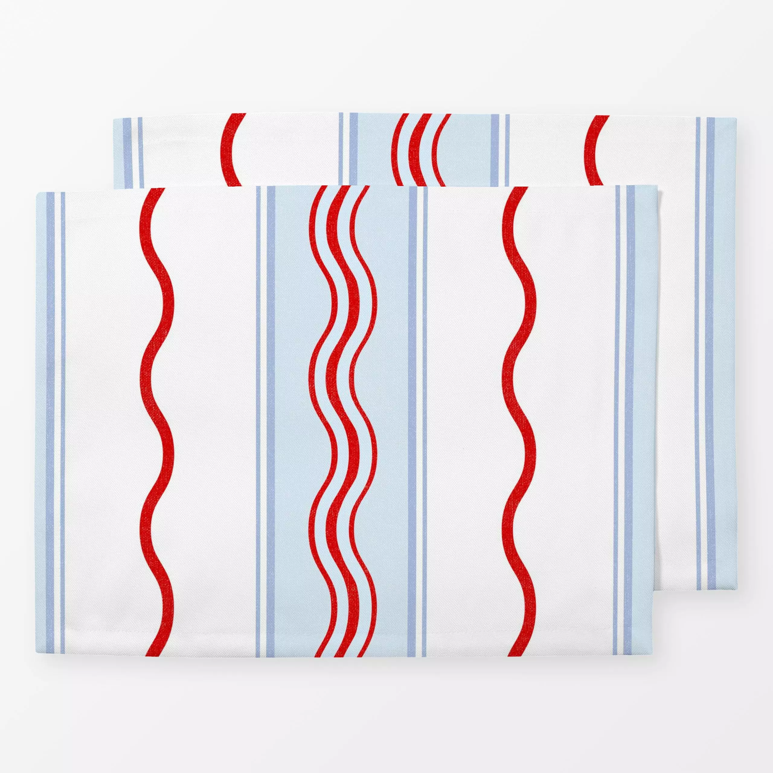 Tischset Coastal preppy Wellen II - Sommer, Symbole & Muster, Retro & Vintage - von „Bloomery Decor"; abstrakt, Streifen, mo...