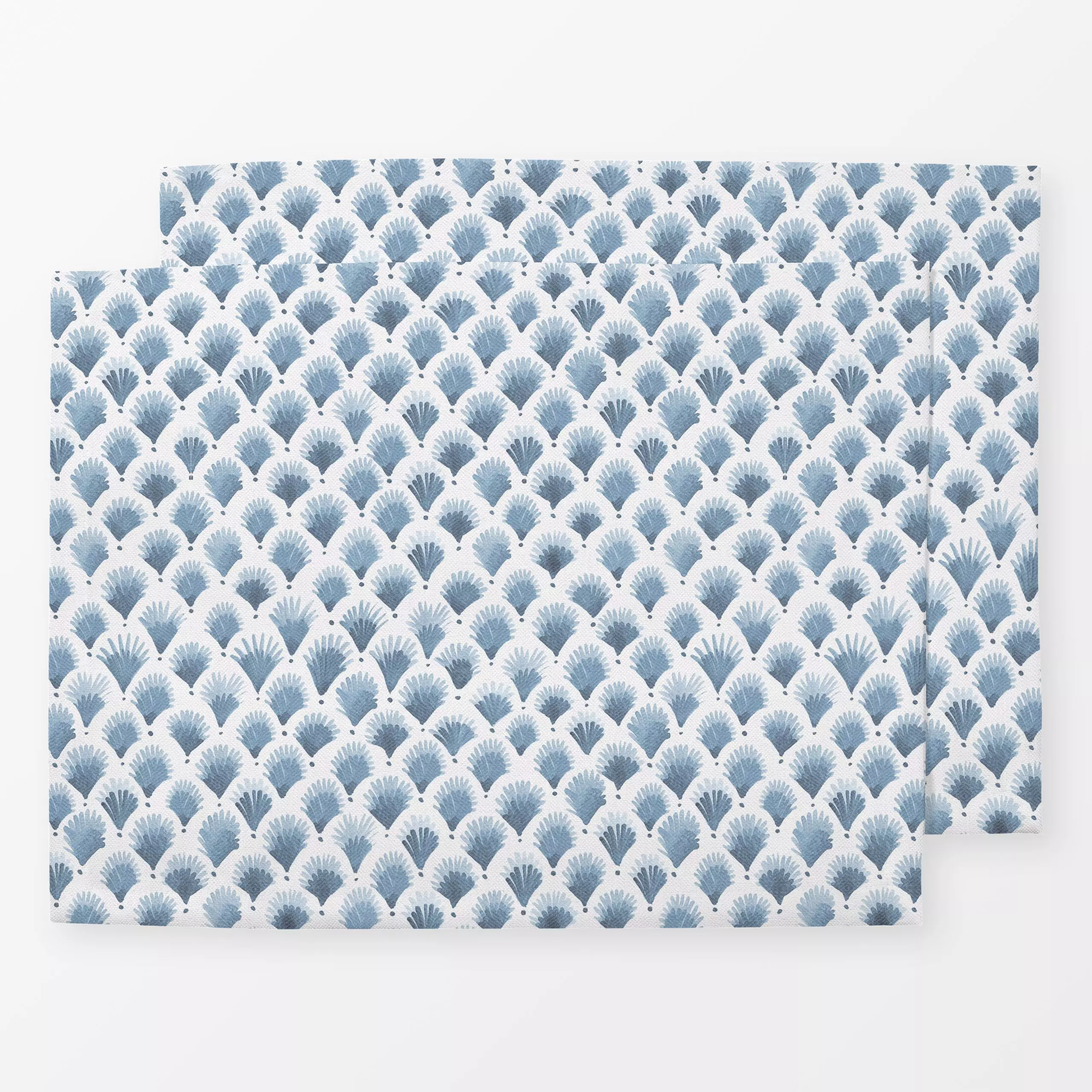 Tischset Cottage Scallops Blue - Symbole & Muster - von „Bloomery Decor"; Blätter, landhaus, Farmhouse, coastal, blue, cotta...