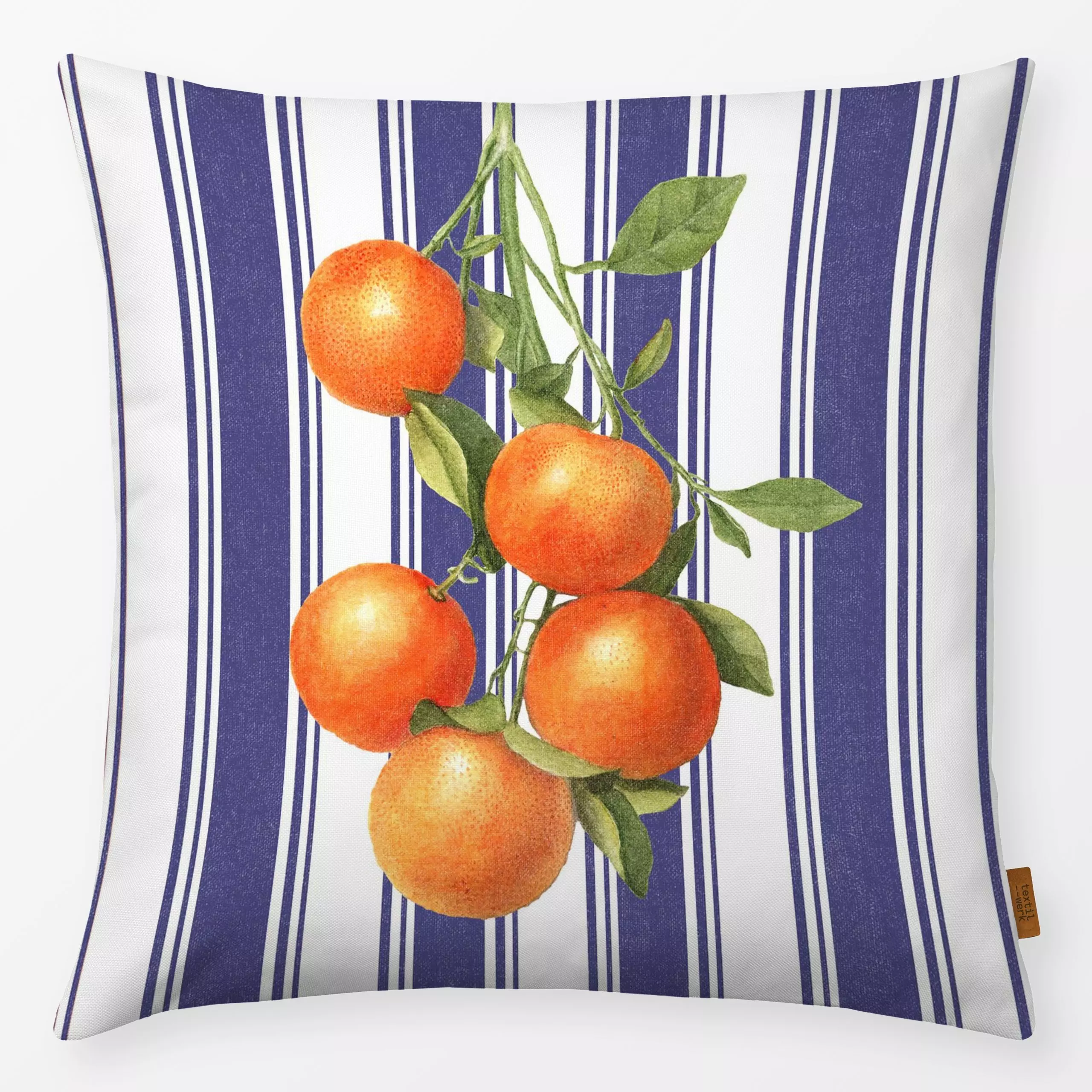 Kissen Coastal Stripes and oranges - Sommer, Symbole & Muster, Früchte - von „Bloomery Decor"; Streifen, Orange, Früchte, vi...