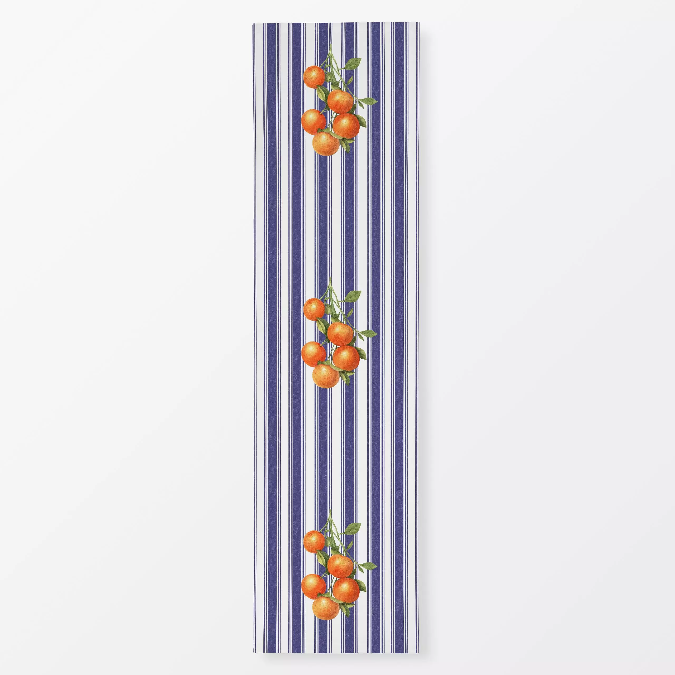 Tischläufer Coastal Stripes and oranges - Sommer, Symbole & Muster, Früchte - von „Bloomery Decor"; Streifen, Orange, Frücht...