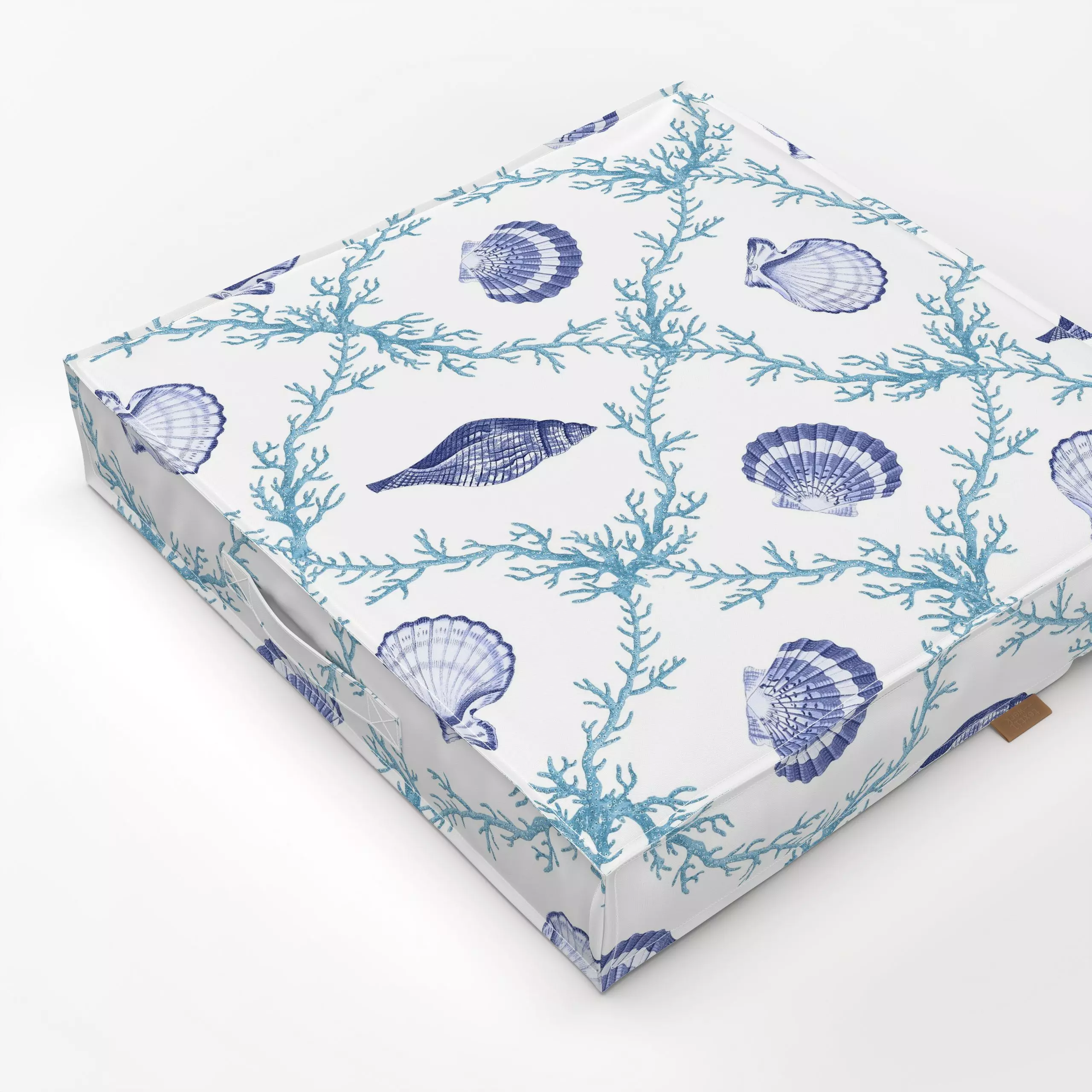 Bodenkissen Preppy coastal shells I - Sommer, Tiere, Symbole & Muster - von „Bloomery Decor"; Muscheln, coastal, blue, fresh...