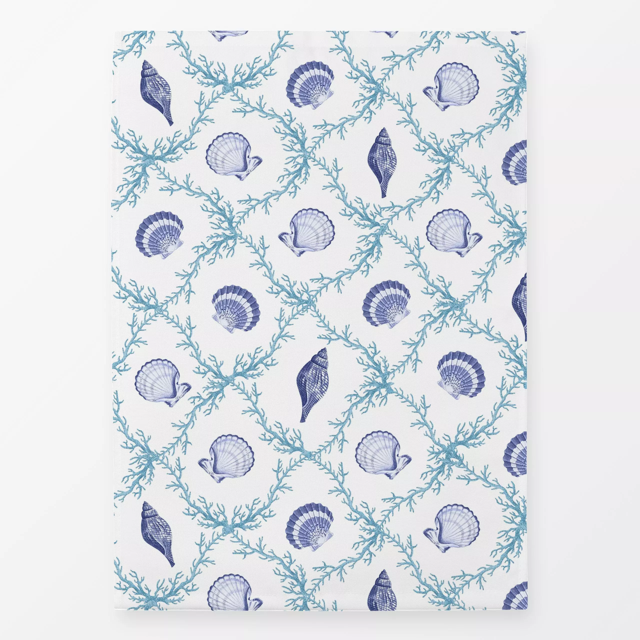 Geschirrtücher Preppy coastal shells I - Sommer, Tiere, Symbole & Muster - von „Bloomery Decor"; Muscheln, coastal, blue, fr...