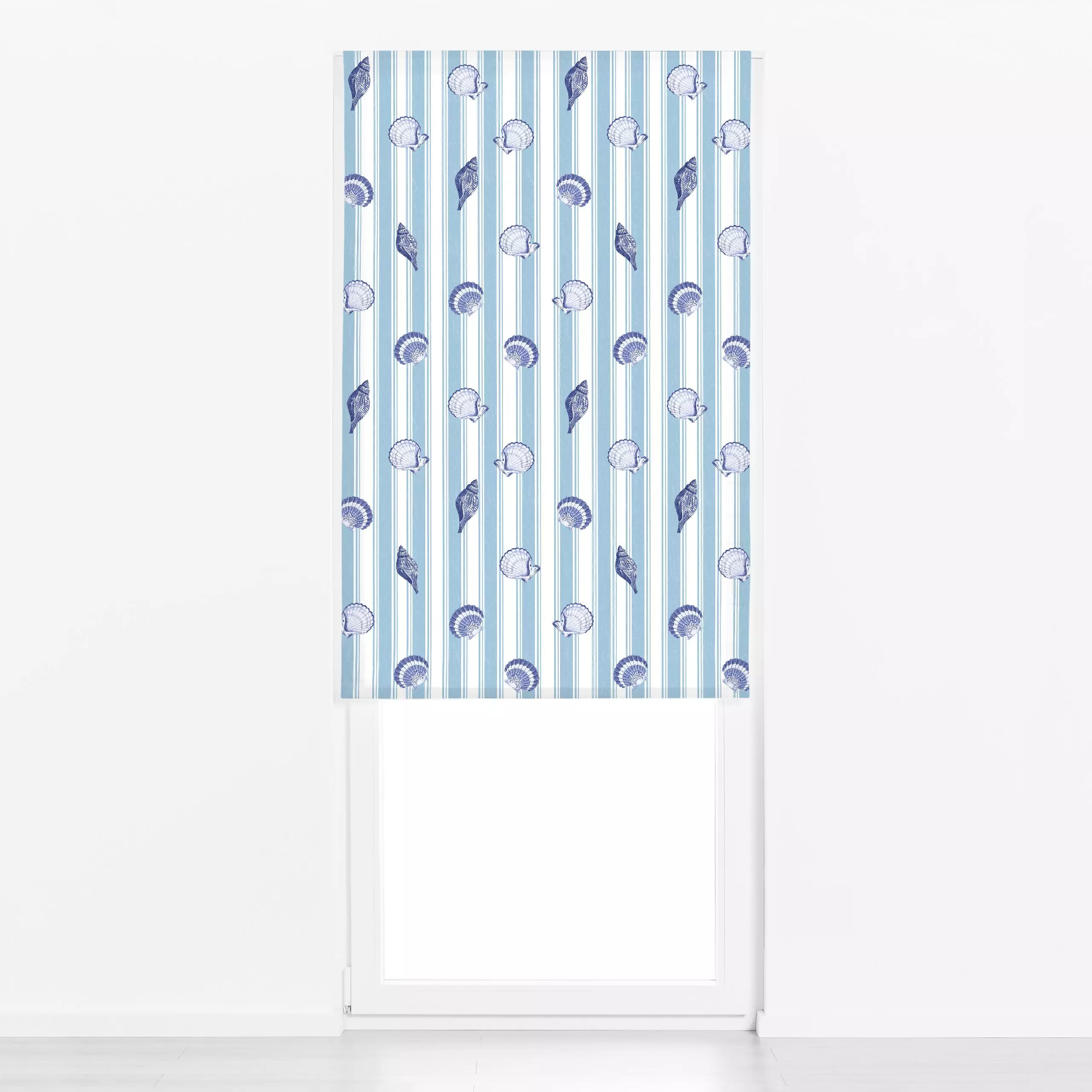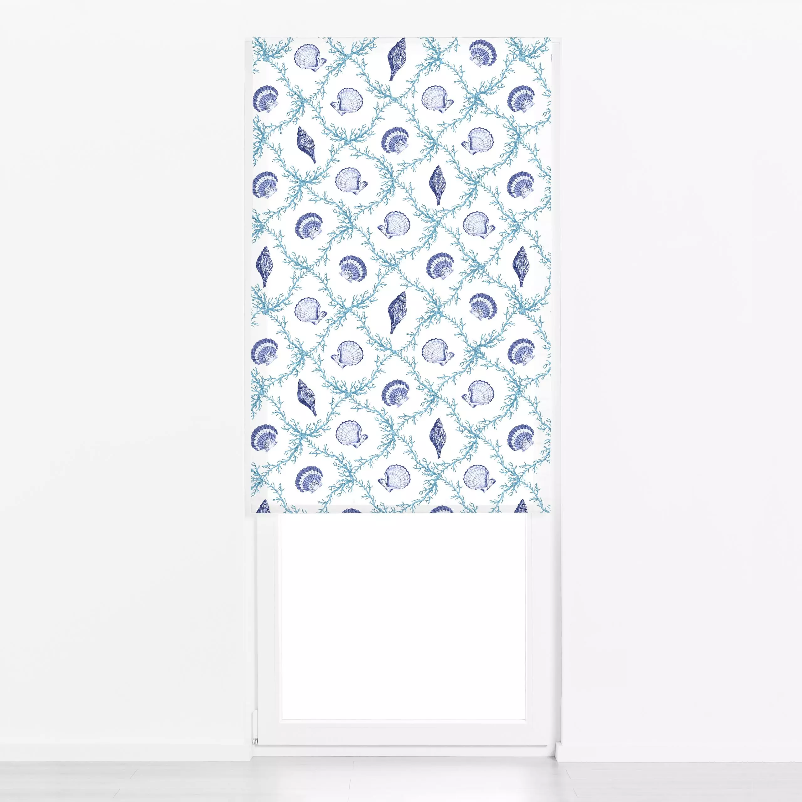 Raffrollo Preppy coastal shells I - Sommer, Tiere, Symbole & Muster - von „Bloomery Decor"; Muscheln, coastal, blue, fresh, ...