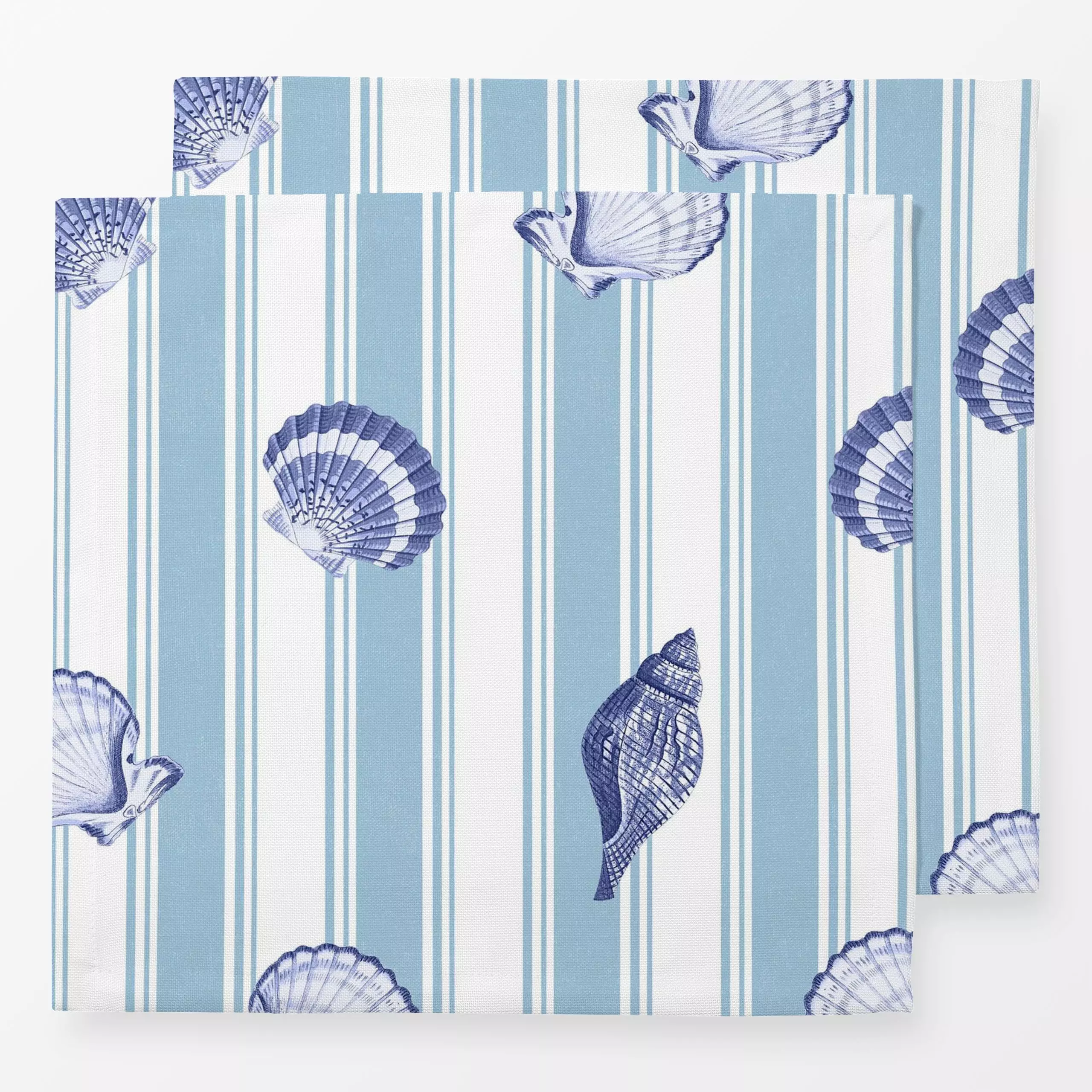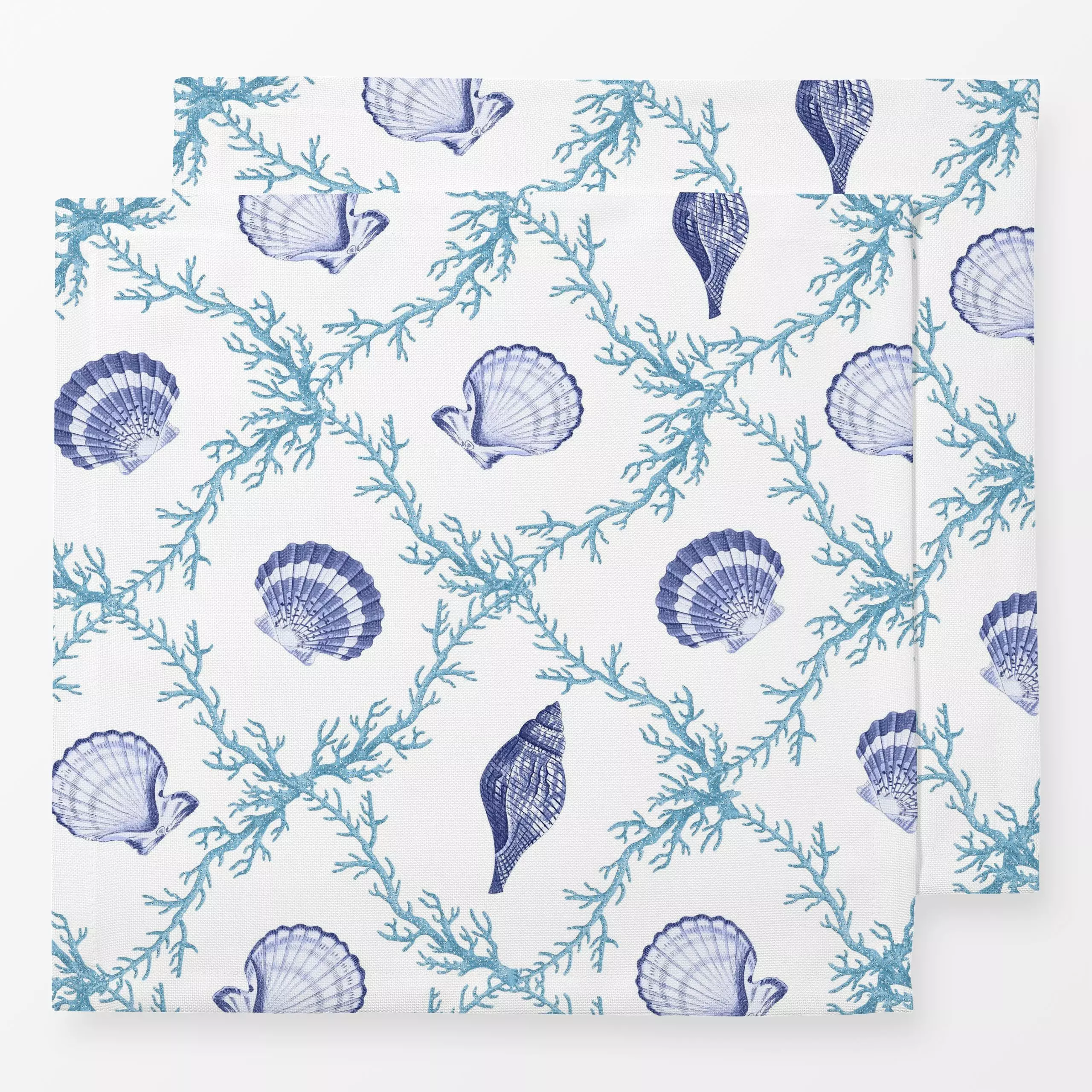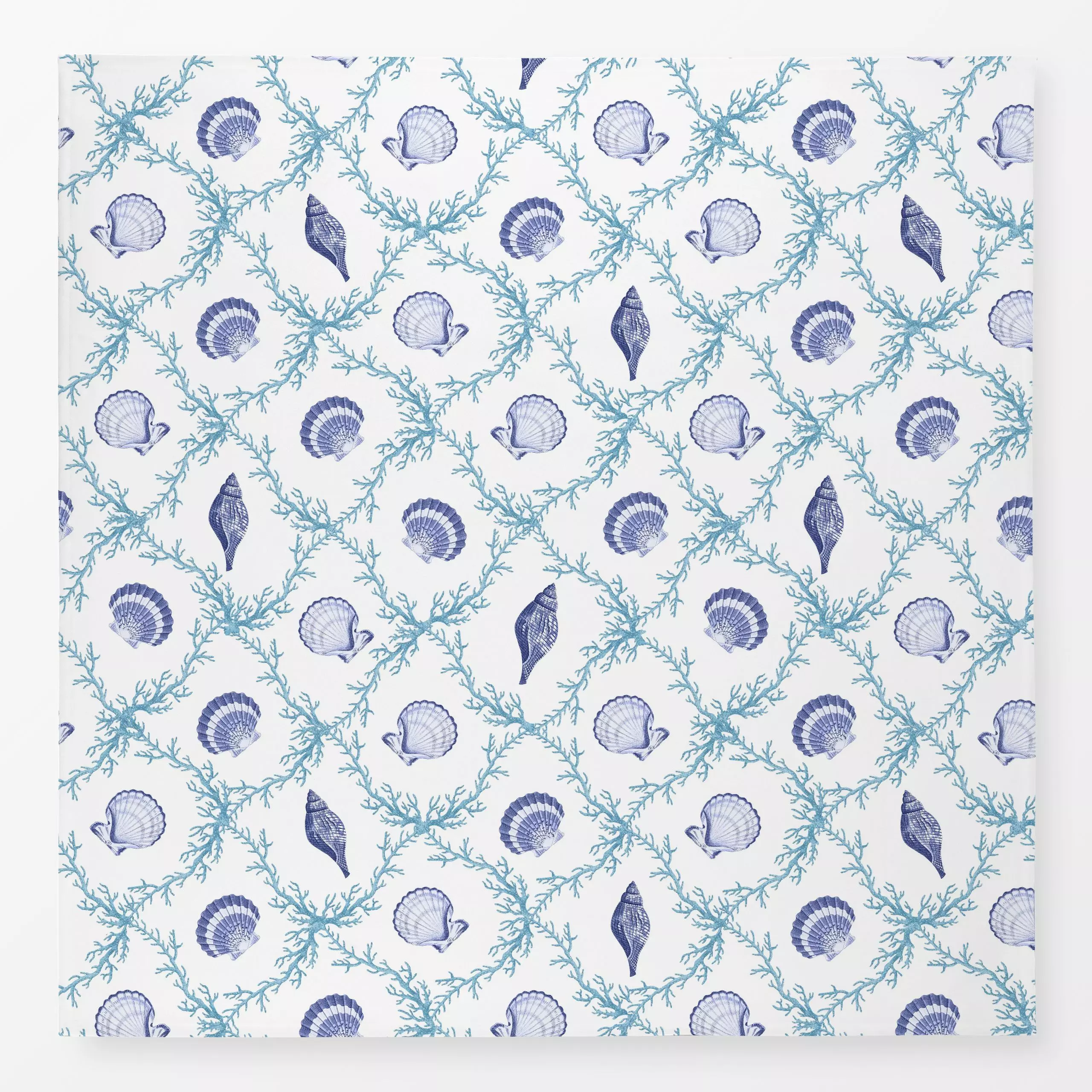 Servietten Preppy coastal shells I - Sommer, Tiere, Symbole & Muster - von „Bloomery Decor"; Muscheln, coastal, blue, fresh,...