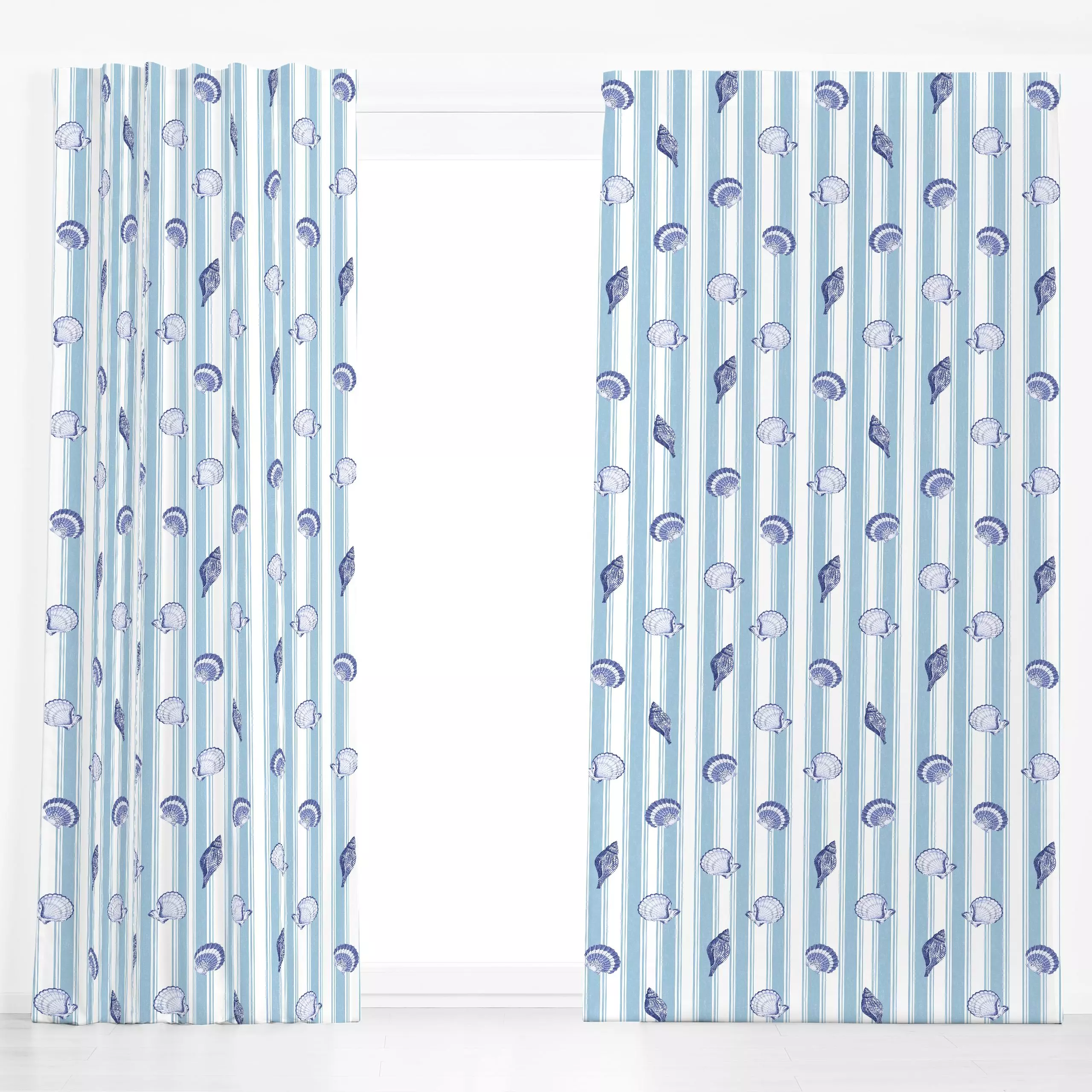 Dekovorhang Preppy stripes and shells I - Sommer, Tiere, Symbole & Muster - von „Bloomery Decor"; Meer, Muscheln, coastal, s...