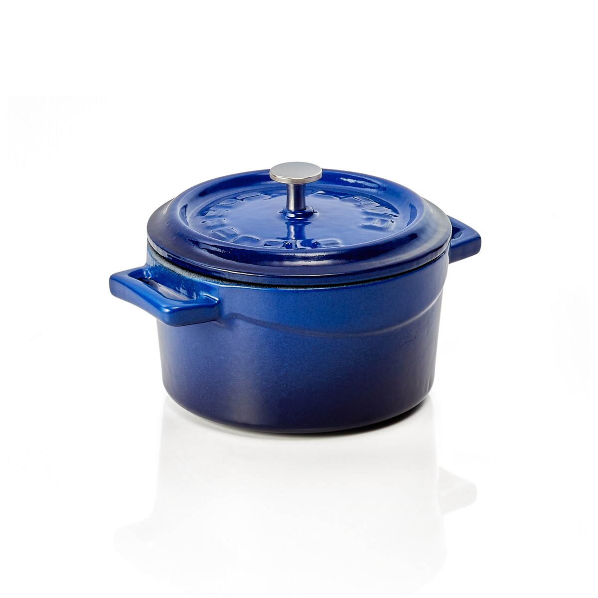 Mini-Cocotte, emailliert, mit Deckel, geflanschter Rand, geeignet für Gasherde, 0,3L, ø115x(H)90mm, Edelstahl, Blau