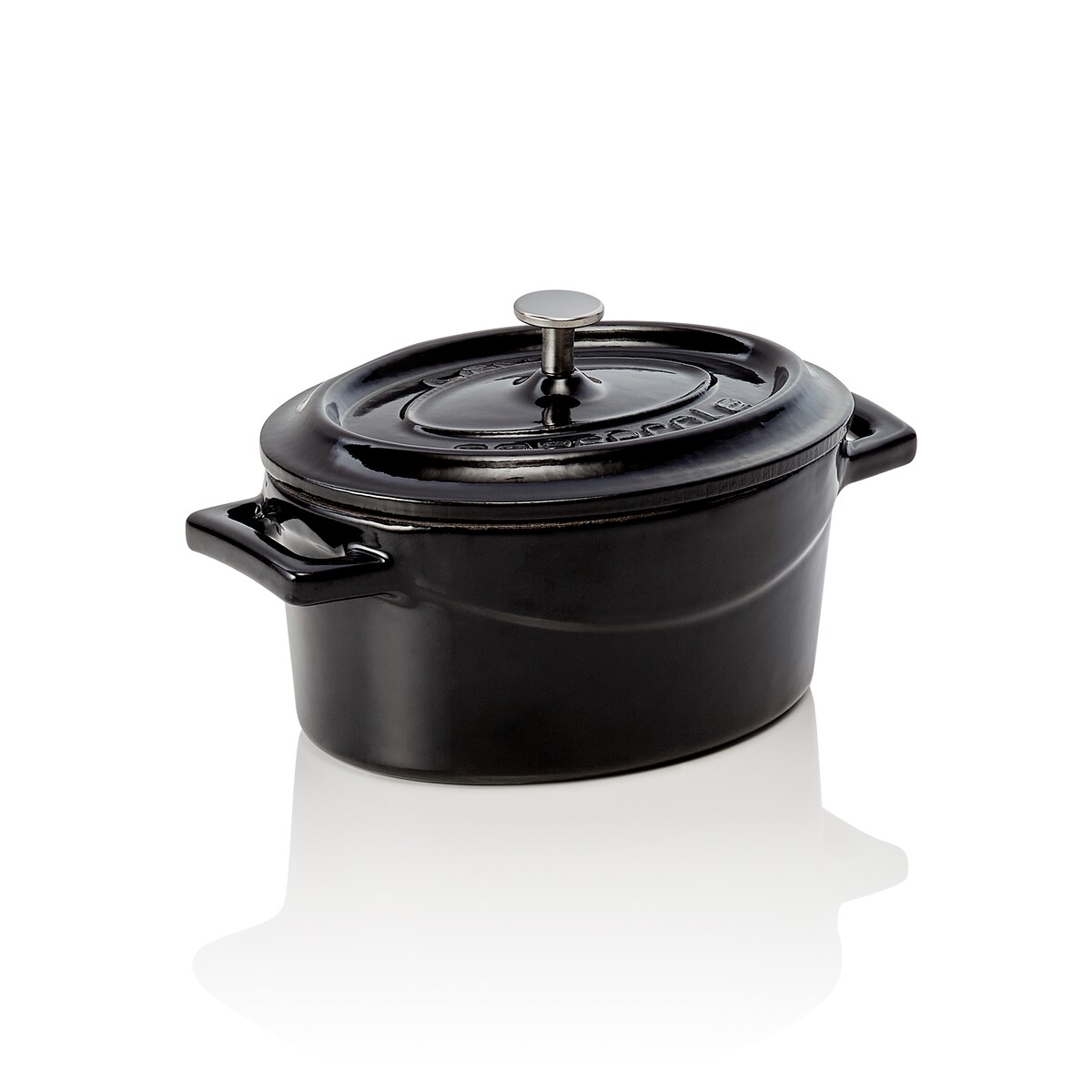 LAVA Cocotte schwarz 12,5 x 10 x 6 cm, Serie Cocottes oval Gusseisen emailliert