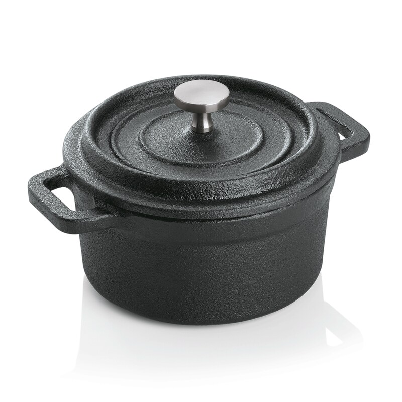 WAS Cocotte, 12,5 x 9,5 x 6,5 cm, schwarz, Gusseisen, Edelstahl