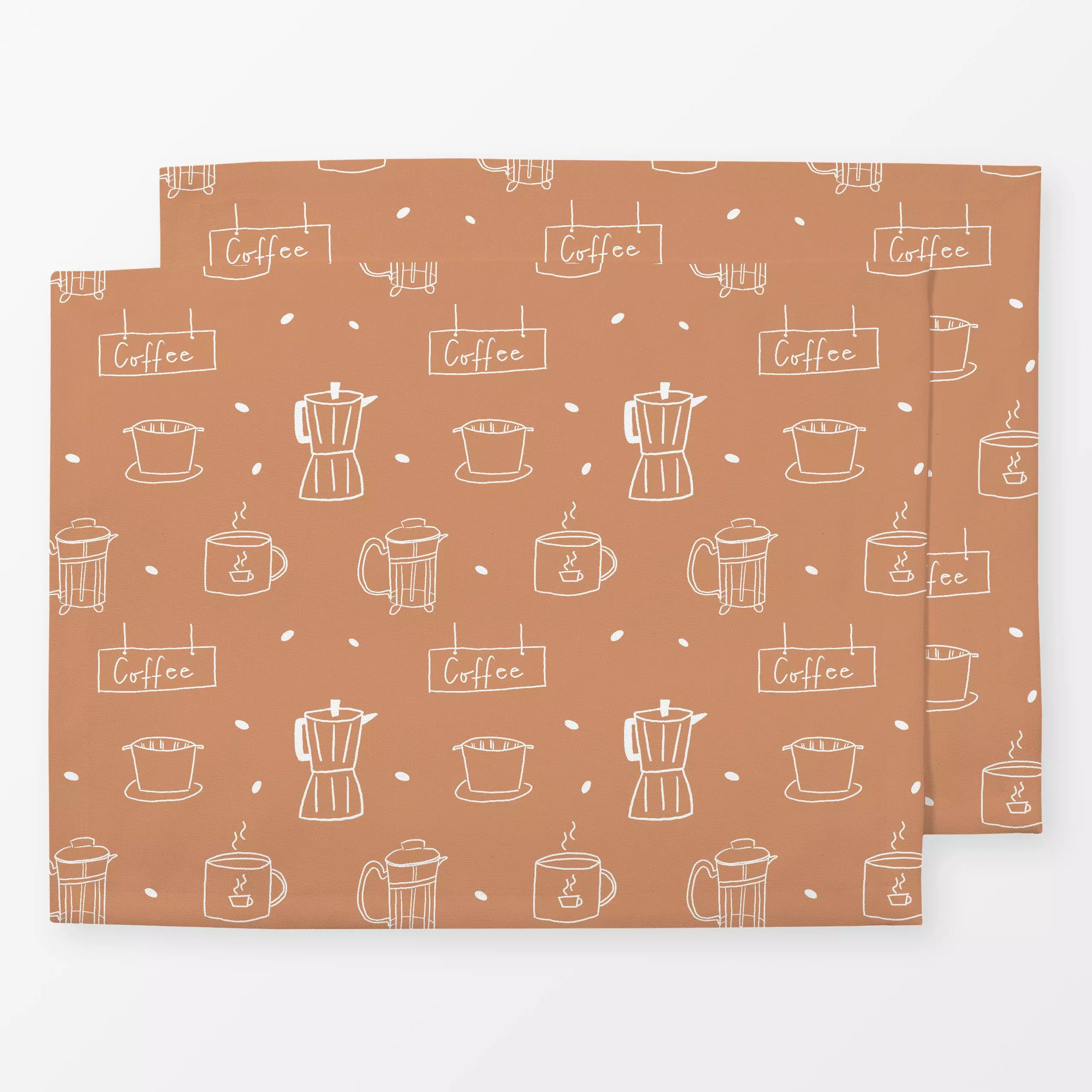Tischset Coffee Accessories brown - Küche, Essen & Trinken - von „Lena Yokota"; Kaffee, Cozy, lineart, Coffee, autumn, coffe...