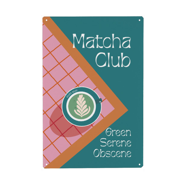 Metall Poster "Matcha Club - Green" artboxONE - Essen & Trinken - Matcha,Cup,Table,Top down,Coffee,Green,Matcha latte - Blechschild