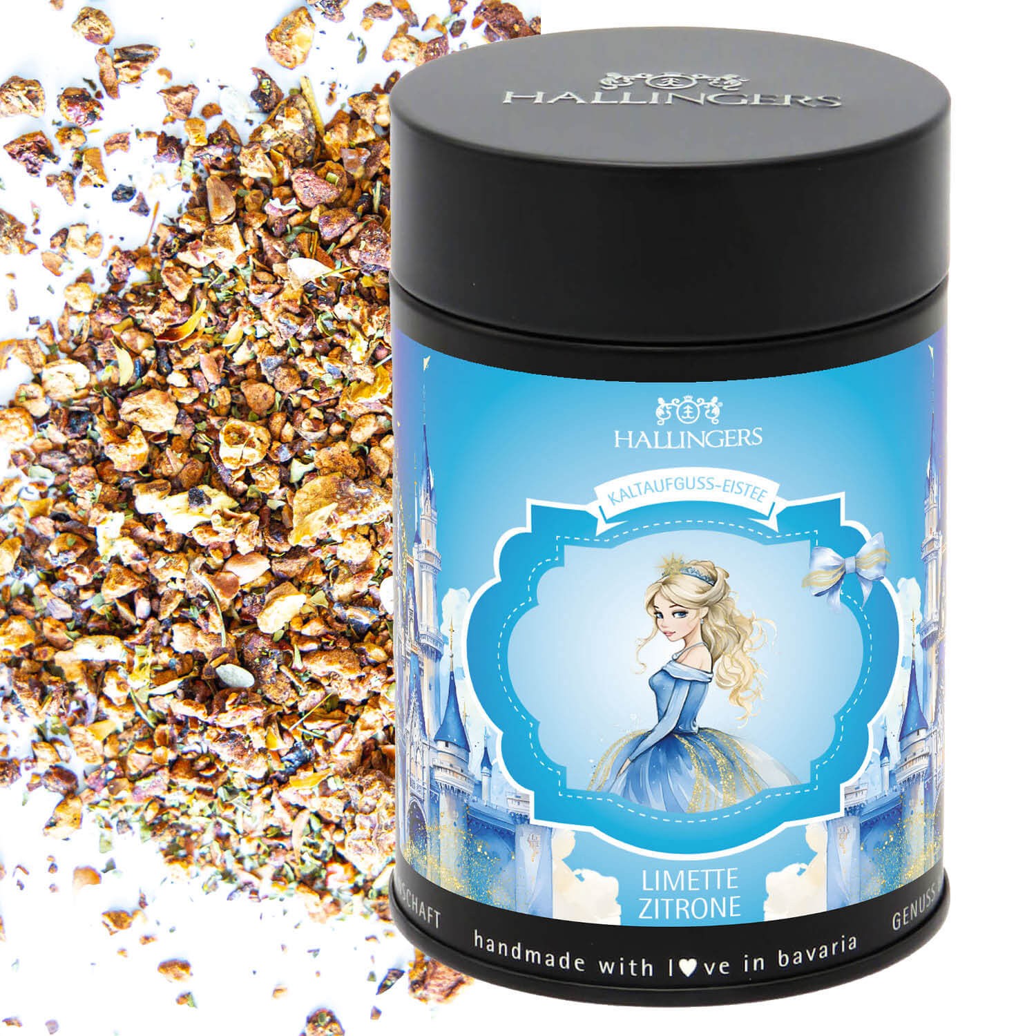 Tee Geschenk - Loser Cold Brew Früchtetee Eistee für Mädchen & Kinder kalt & warm aufgießbar Limette-Zitrone, edle Geschenkdose "Eistee Prinzessin", G