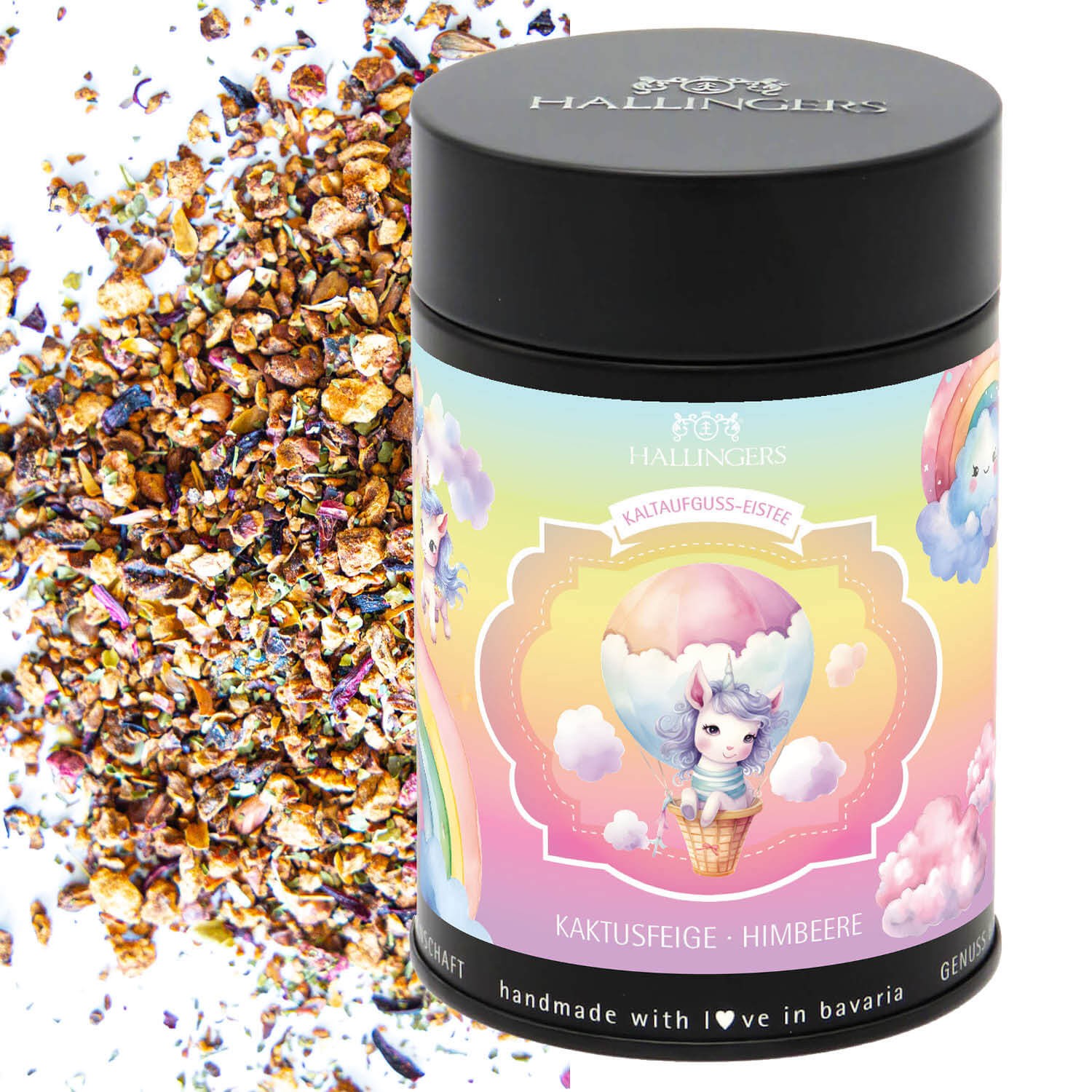 Tee Geschenk - Loser Cold Brew Früchtetee Eistee für Mädchen & Kinder kalt & warm aufgießbar Kaktusfeige-Himbeere, edle Geschenkdose "Einhorn Eistee",