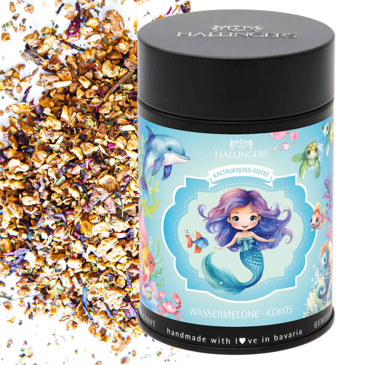 Tee Geschenk - Loser Cold Brew Früchtetee Eistee für Mädchen & Kinder kalt & warm aufgießbar Wassermelone-Kokos, edle Geschenkdose "Meerjungfrau Eiste