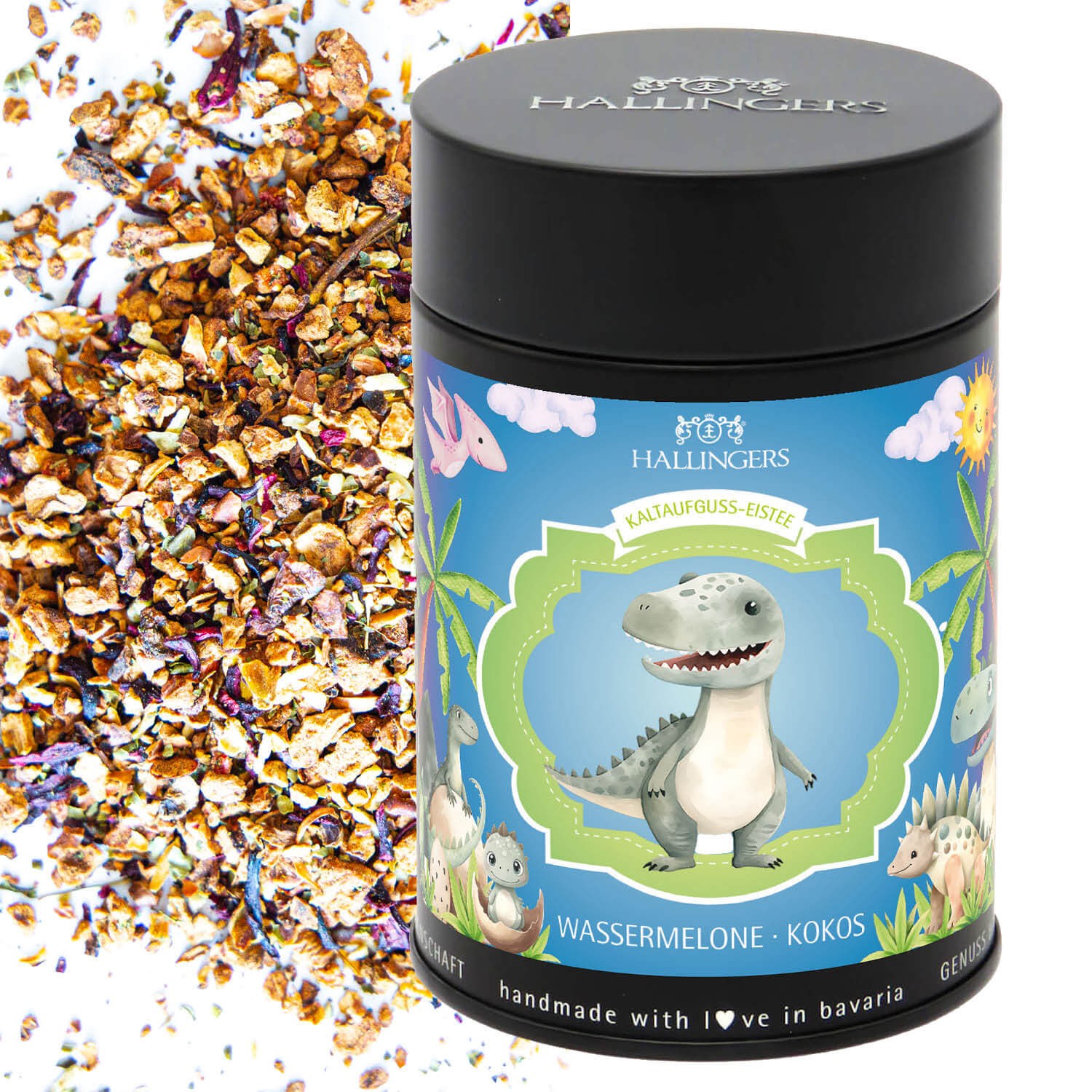 Tee Geschenk - Loser Cold Brew Früchtetee Eistee für Jungen & Kinder kalt & warm aufgießbar Wassermelone-Kokos, edle Geschenkdose "Dinosaurier Eistee"