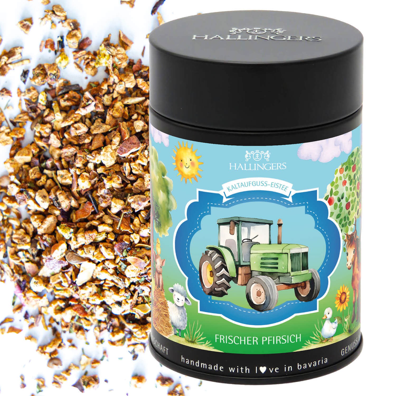 Tee Geschenk - Loser Cold Brew Früchtetee Eistee für Jungen & Kinder kalt & warm aufgießbar Pfirsich, edle Geschenkdose "Traktor Eistee", Geschenkidee